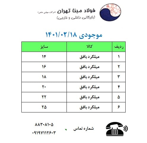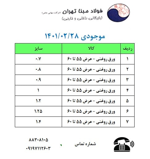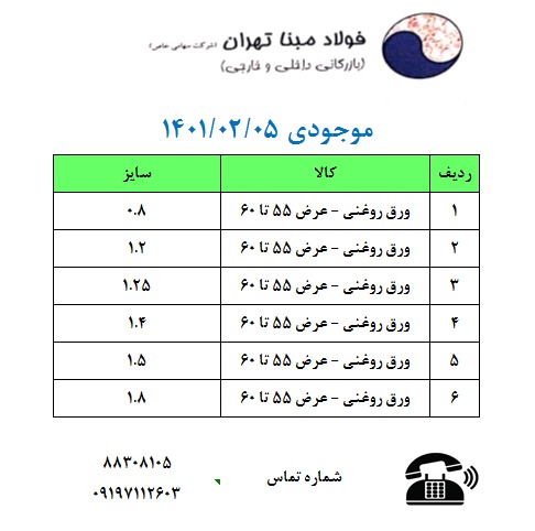 ⭕️شرکت فولاد #مبنا_تهران ورق 0.8 1.2 1.25 1.40 1.50 1.8 عرض 55 تا 60 روغنی محصول کارخانه فولاد افشان اراک ***** میلگرد بافق ۱۴ تا ۲۵ **** میلگرد ذوب آهن ...