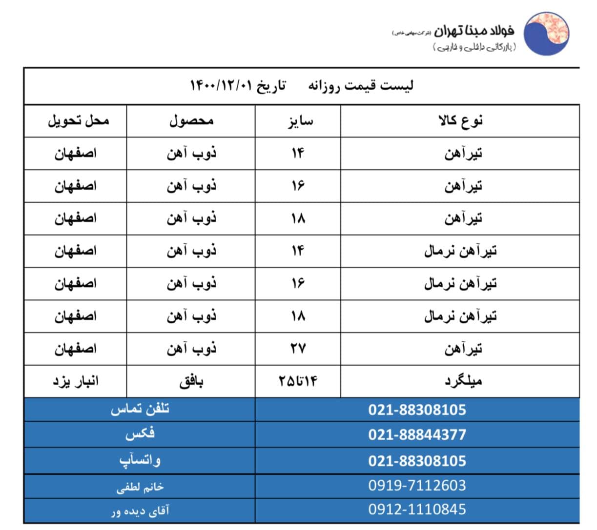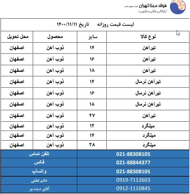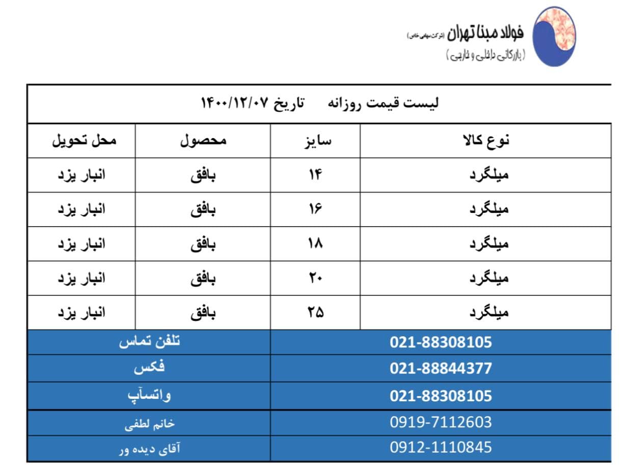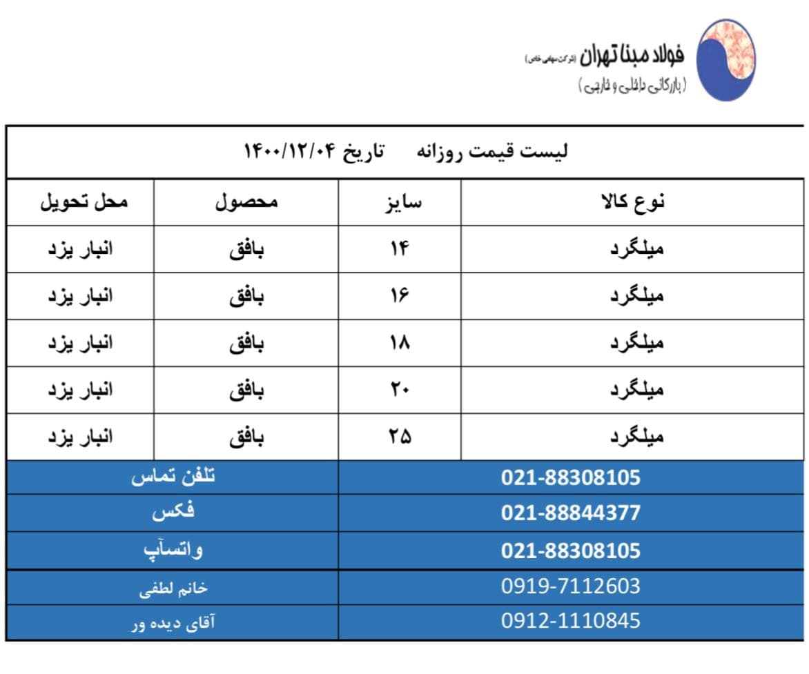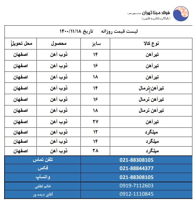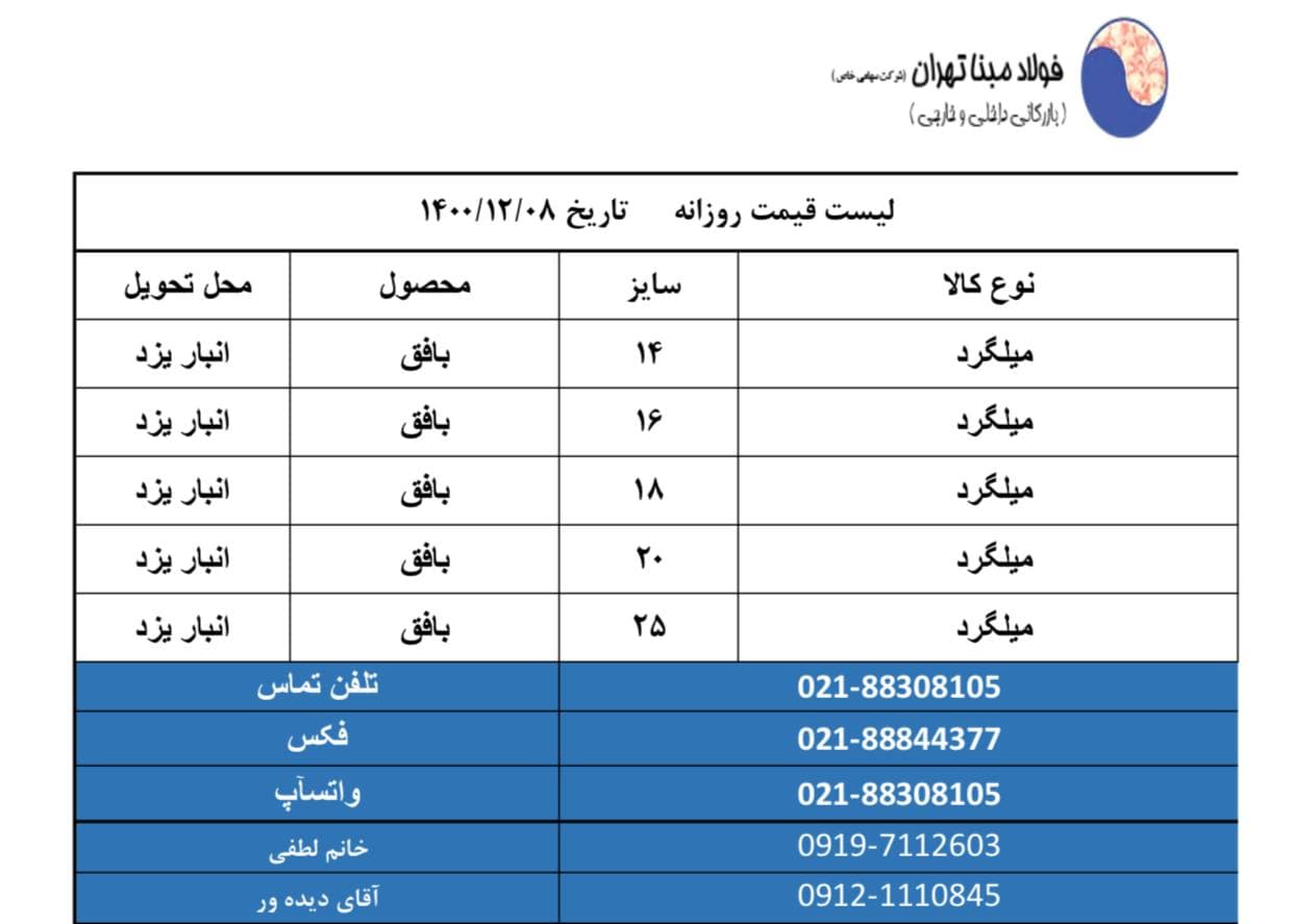 شرکت فولاد #مبنا_تهران 📱09121110845 📱09904321038 📱09904321039 ☎️02188308105 🆔http://t.me/FouladMabnaTehran 📌 https://www.instagram.com/Foulad_mabna_tehran