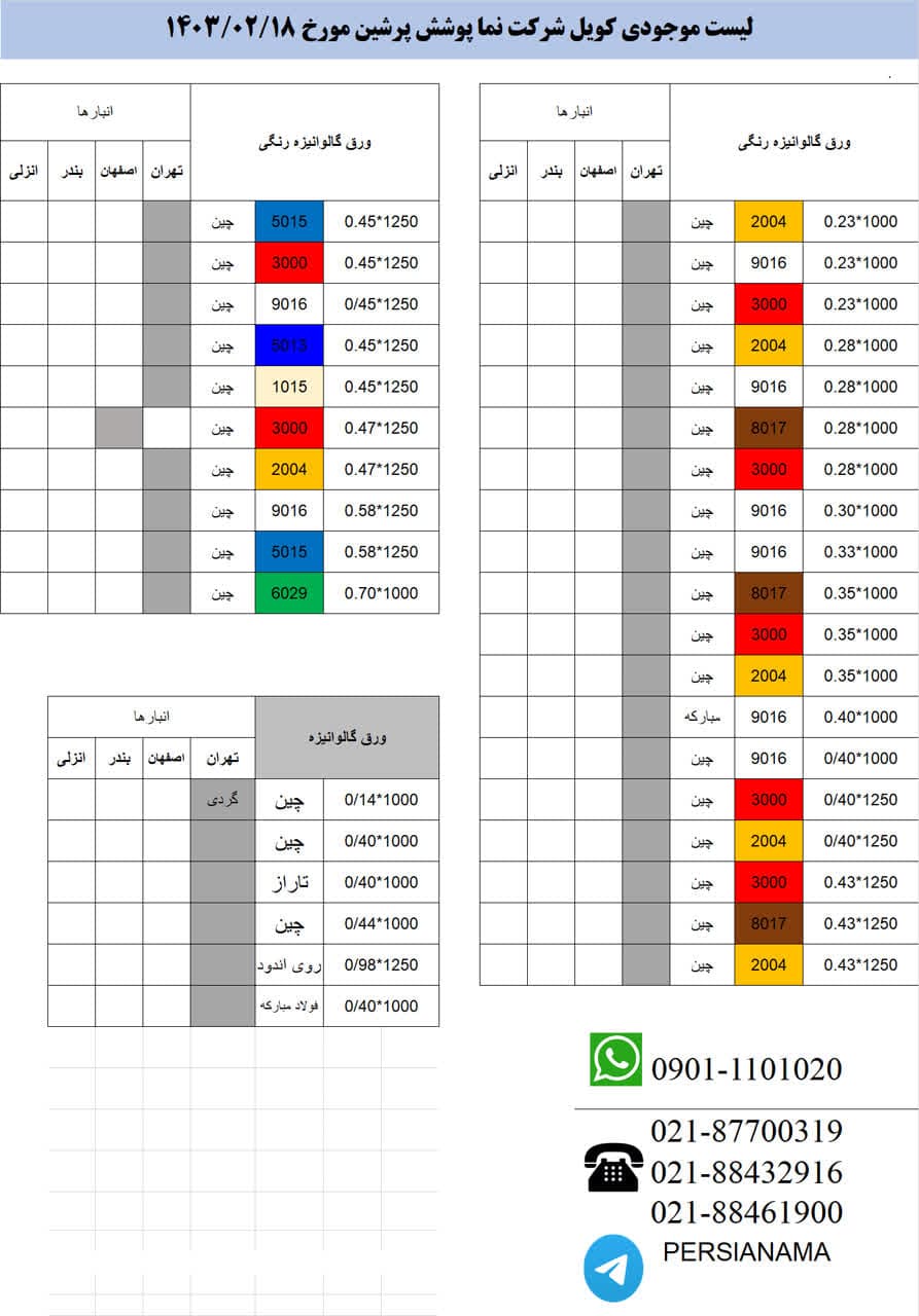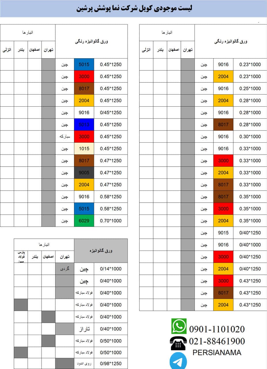 قیمتهای شرکت نما پوشش پرشین