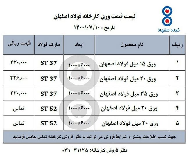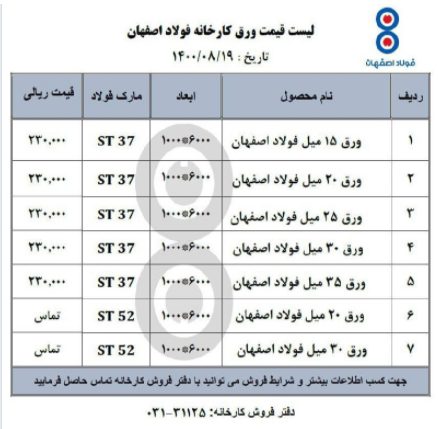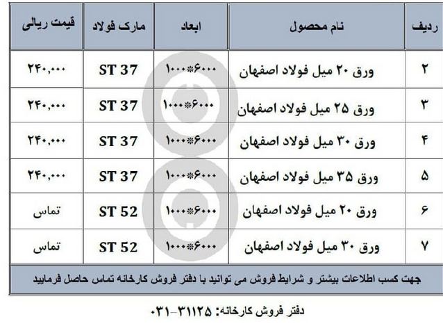 قیمتهای فولاد اصفهان