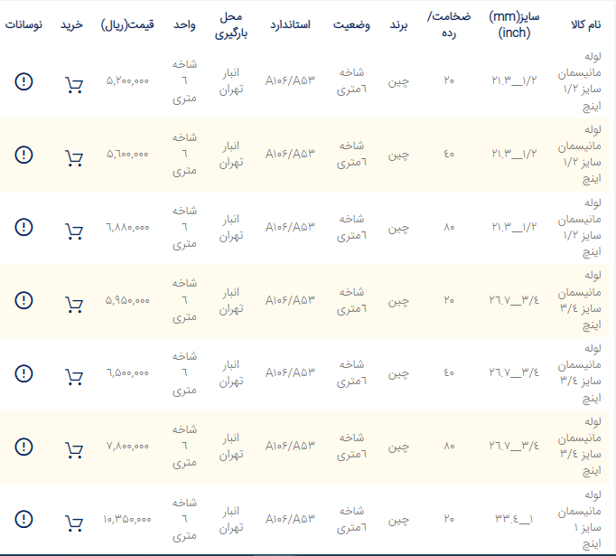 جهت مشاهده قیمت محصولات کلیک کنید.درخواستهای خرید آهن یک