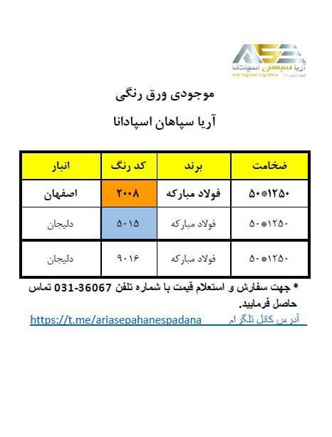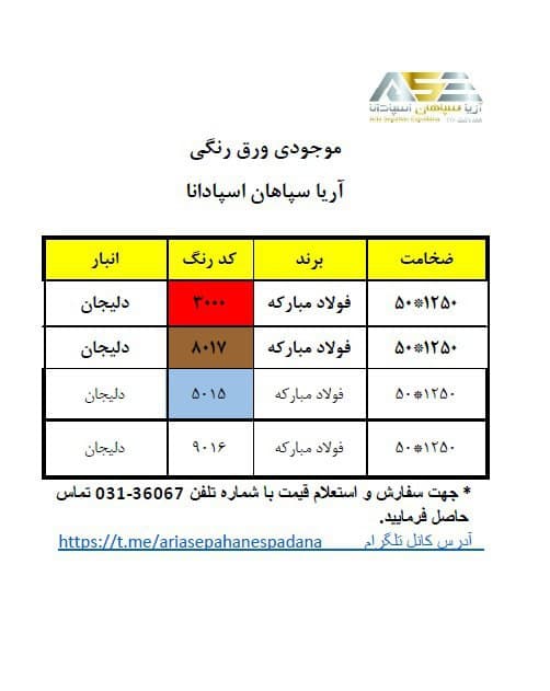 آریا سپاهان اسپادانا تولید کننده ی انواع لوله،قوطی،پروفیل ستونی ،سازه ی فلزی ،فرمینگ ،ورق برشکاری آدرس :اصفهان خیابان مشتاق اول ابتدای خیابان ابوالحسن اصفهانی ...