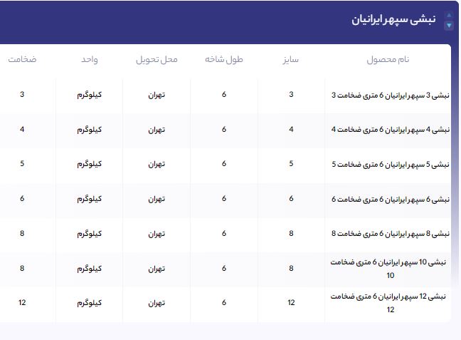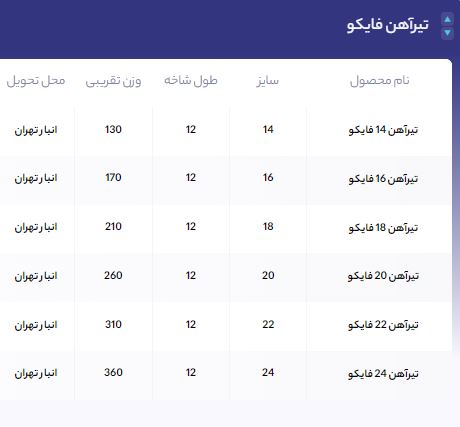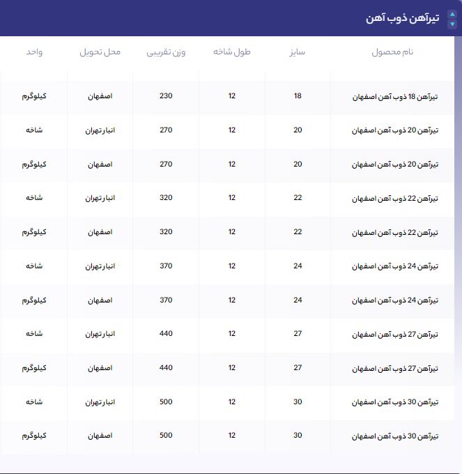 اعلام موجودی تیرآهن
