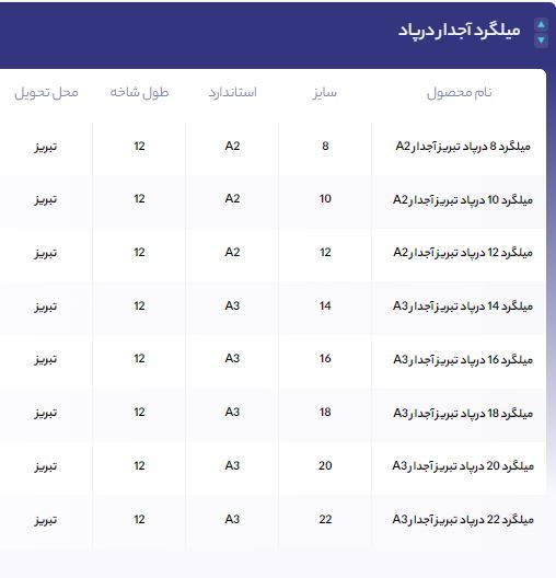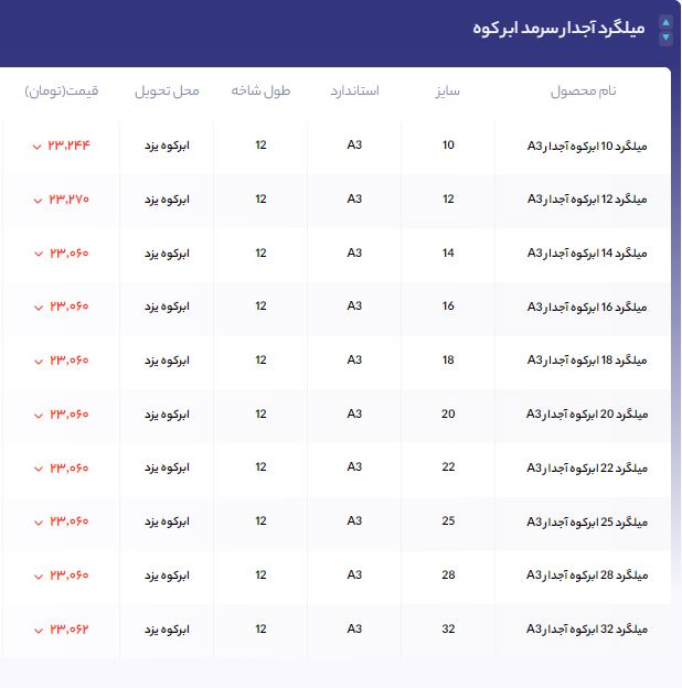 اعلام موجودی میلگرد