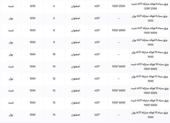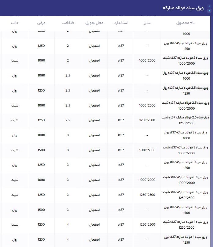 اعلام موجودی ورق گالوانیزه و رنگی
