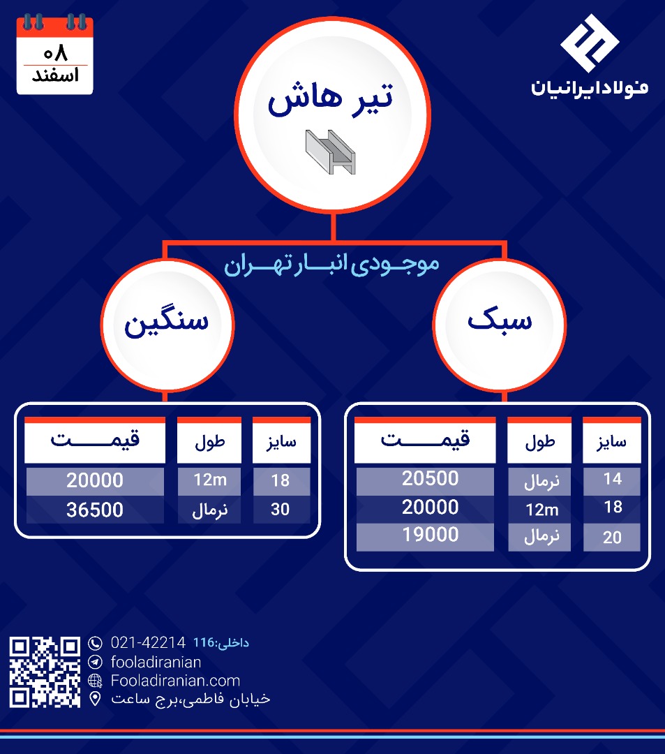📆 دوشنبه ۱۴۰۲/۰۲/۱۱ 🔸هزاران درود بر همراهان فولادی🔸#موجودی_انبار #تیرآهن #هاش#HEA #HEB🔹هاش ۱۶ سنگین 🔹هاش ۱۸ سنگین 🔹هاش ۲۰ سنگین 🔹هاش ۱۸ سبک تحویل: #انبار_اصفه ...