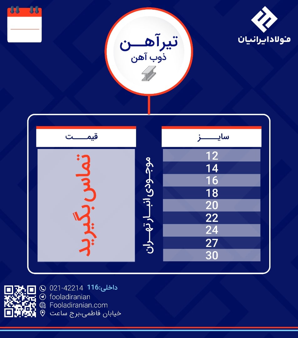 📆 دوشنبه ۱۴۰۲/۰۲/۱۱ 🔸هزاران درود بر همراهان فولادی🔸#موجودی_انبار #تیرآهن #شاخه #I7🔹تیرآهن ۱۴ 🔹تیرآهن ۱۶ 🔹تیرآهن ۱۸تحویل: #انبار_اصفهان 🔸@fooladiranian🔹برا ...