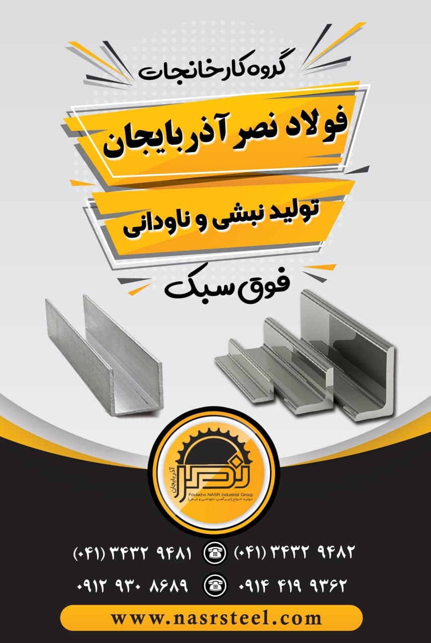 ✅گروه کارخانجات #فولاد_نصر_آذربایجان ⭕️تولید کننده نبشی و ناودانی فوق سبک ☎️04134329481 ☎️04134329482 ☎️04134329483 📱09129308689 📱09144199362 🌐nasrsteel.com