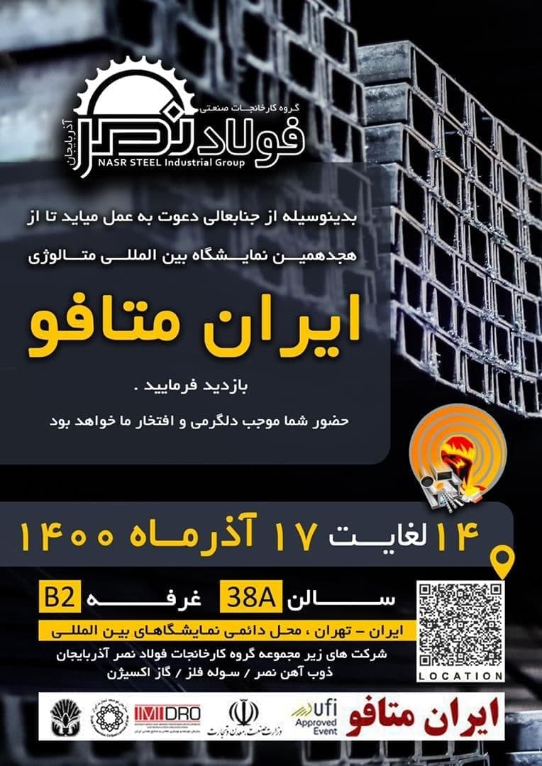 ✅گروه کارخانجات #فولاد_نصر_آذربایجان 📌تولیدکننده انواع #نبشی و #ناودانی_فوق_سبک شما را به بازدید از غرفه خود در هجدهمین نمایشگاه بین المللی ایران متافو دعوت می ...