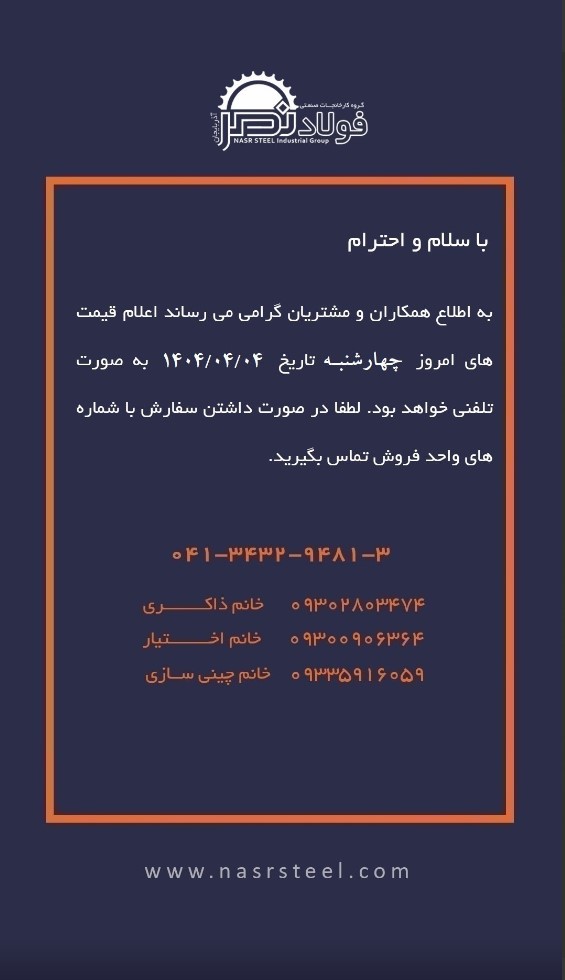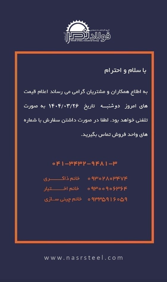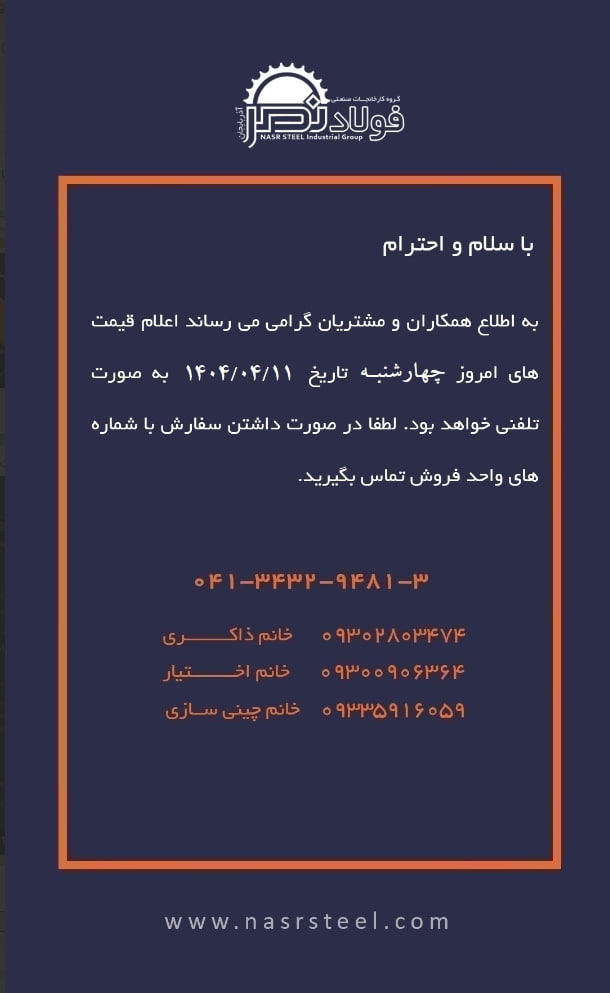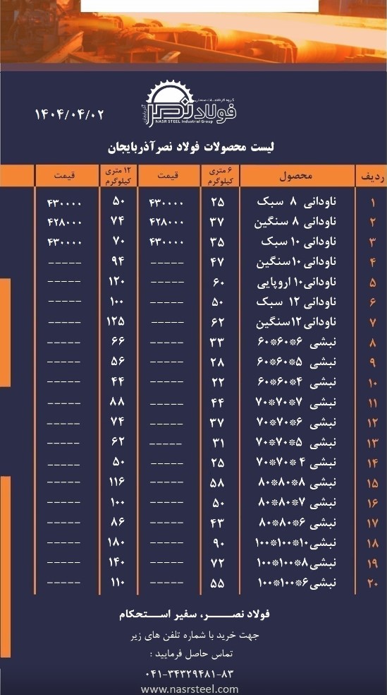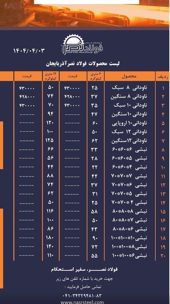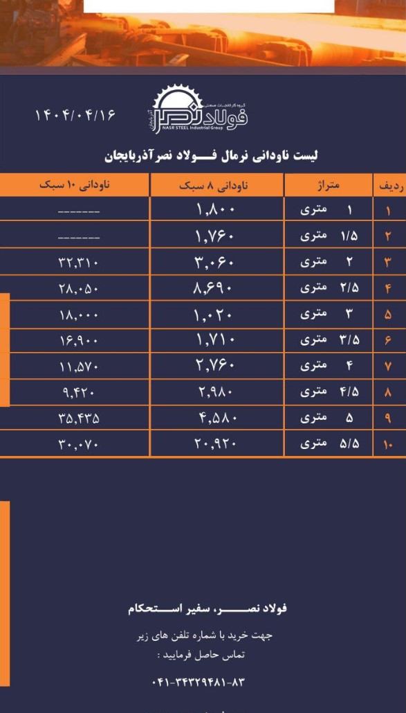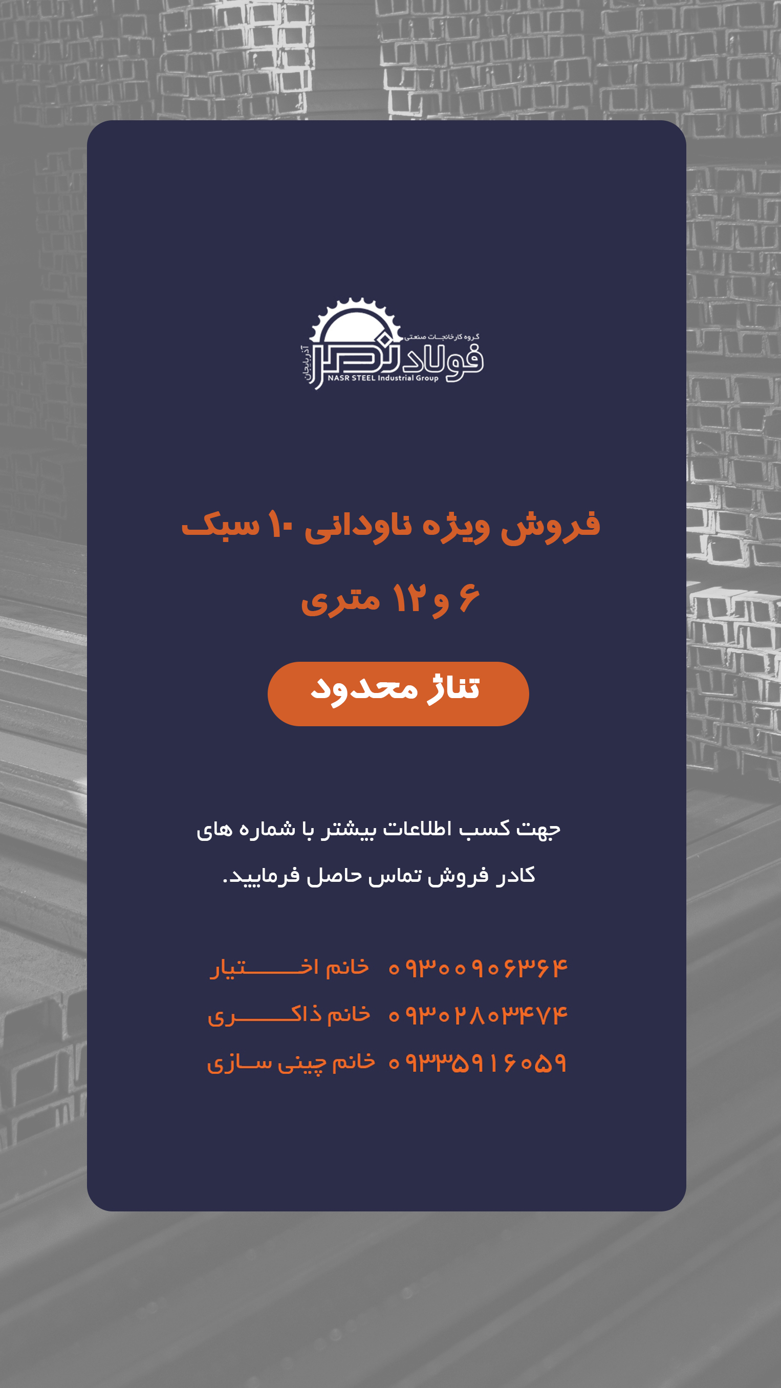 #فولاد_نصر_آذربایجان 📌تولید کننده انواع ناودانی ، نبشی و تیرآهن با استاندارد های روز دنیا 📌صادر کننده نمونه استانی 📍آدرس کارخانه : تبریز ، جاده آذرشهر ، شهرک ص ...