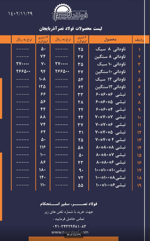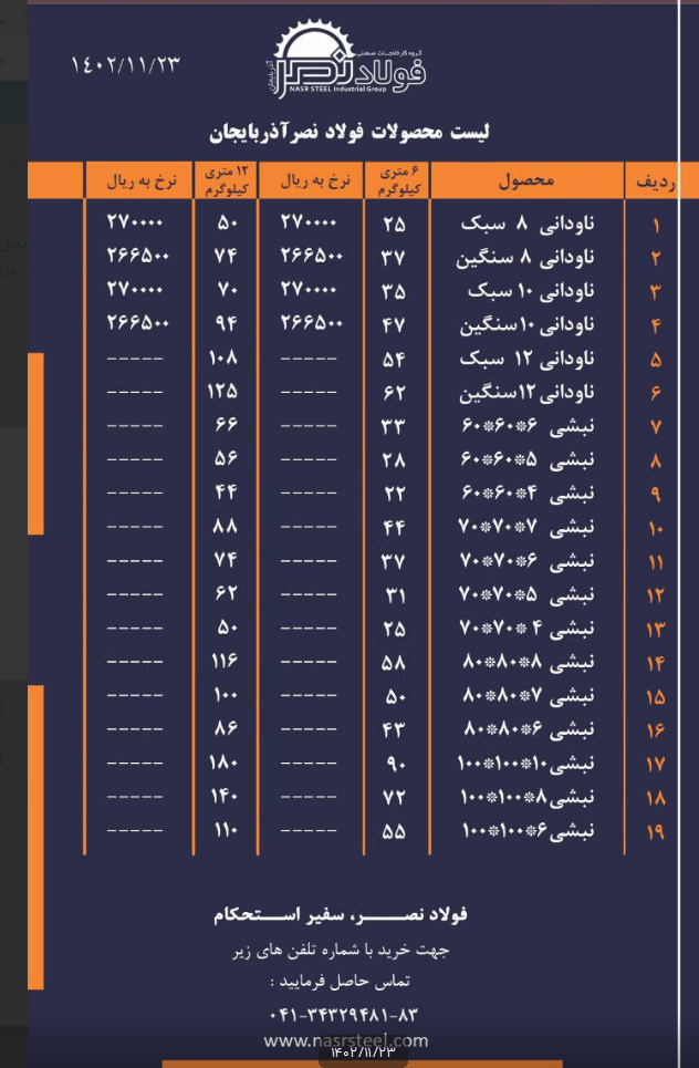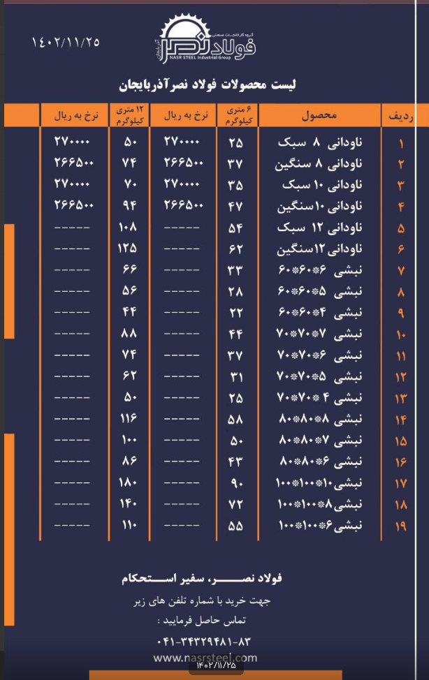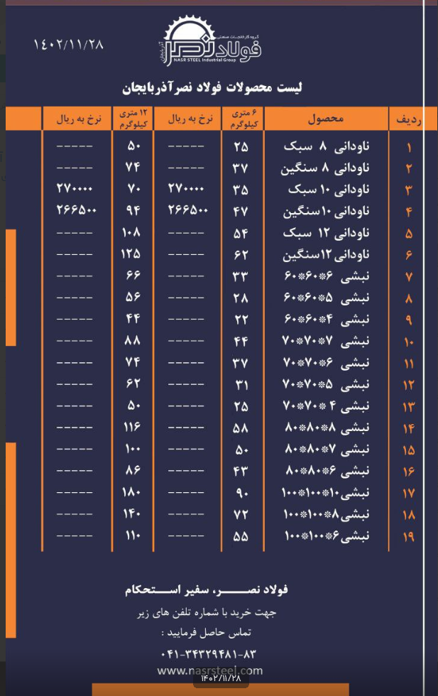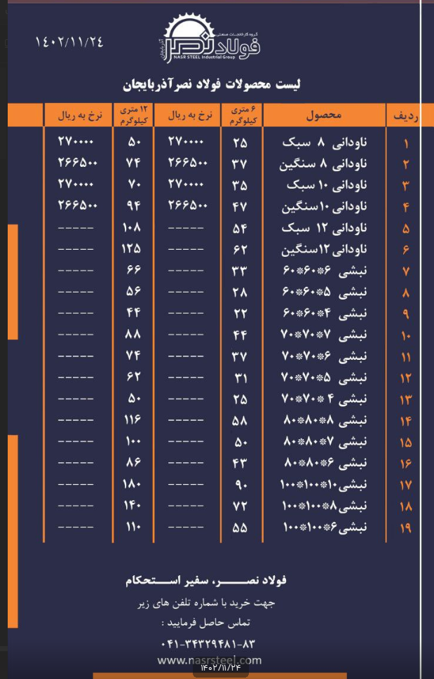 💠 گروه کارخانجات #فولاد_نصر_آذربایجان 📌تولید کننده انواع ناودانی ، نبشی و تیرآهن با استاندارد های روز دنیا 📌صادر کننده نمونه استانی #جهت_مشاهده_پروفایل_فولاد ...