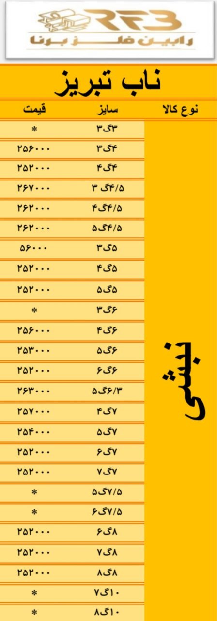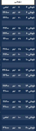 #ضايعاتذوبی 1-روغنی نرمه 16100 2-روغنی ضخیم 16100 3-روغنی ریزبار و پولکی 16100 4-گالوانيزه و ورق روكشدار خودرويي 16000 5-سوپر ويژه 16000 6-كلاف 15950 7-ويژه 1 ...