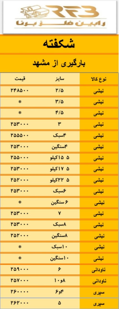 🌐#رابین_فلز_برنا 🔵خریدوفروش انواع آهن آلات صنعتی و ساختمانی : ✳️نبشی،ناودانی 💠میلگرد ✳️تیرآهن،هاش 💠 ورق آجدار ✳️سپری 👈کارخانه و انبار تهران ☎️ 0 ...