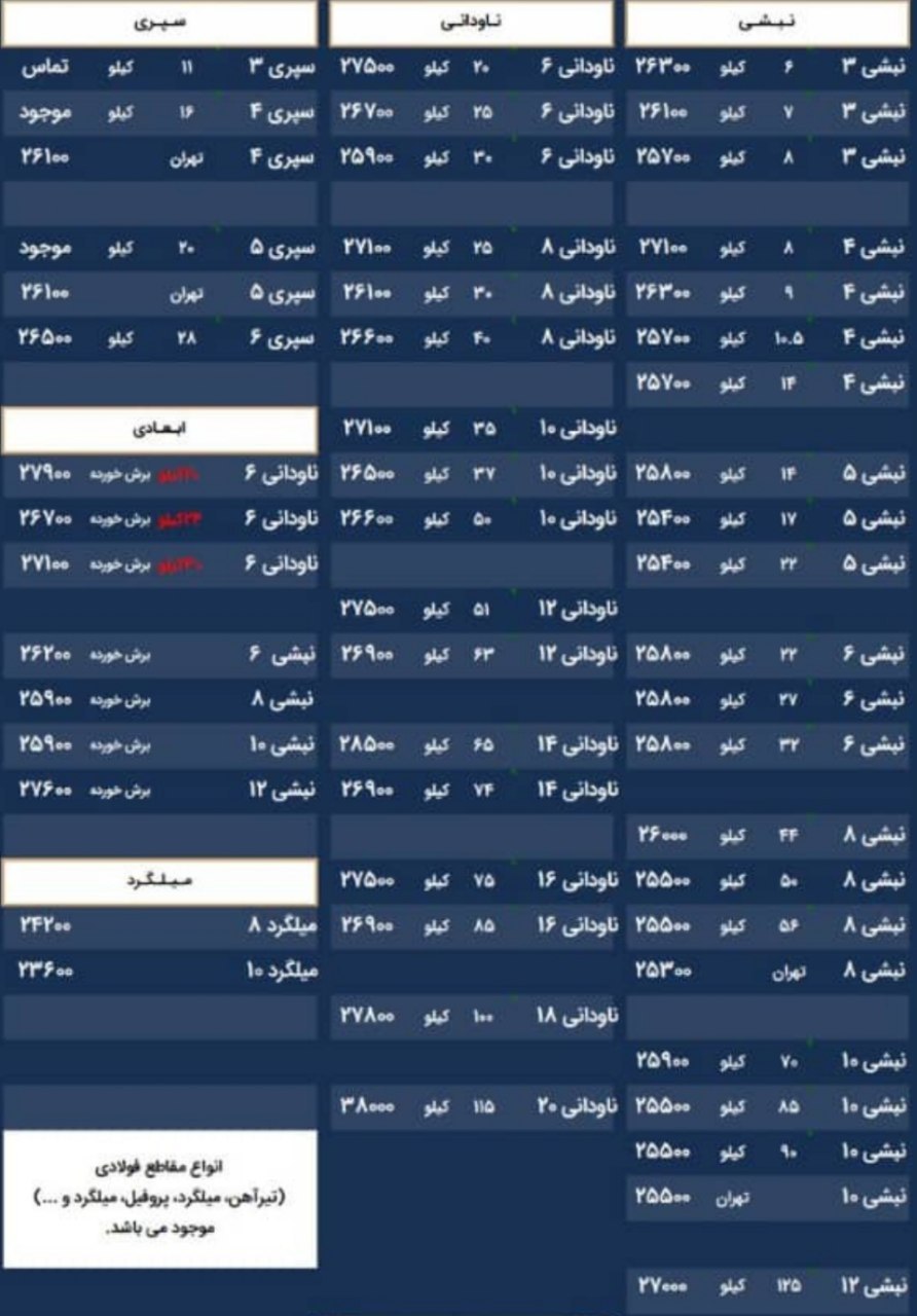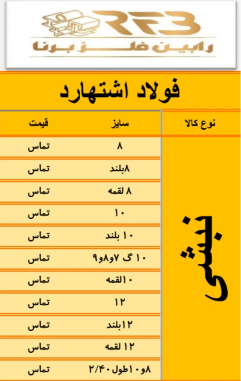 🌐#رابین_فلز_برنا 🔵خریدوفروش انواع آهن آلات صنعتی و ساختمانی : ✳️نبشی،ناودانی 💠میلگرد ✳️تیرآهن،هاش 💠 ورق آجدار ✳️سپری 👈کارخانه و انبار تهران ☎️ 0 ...