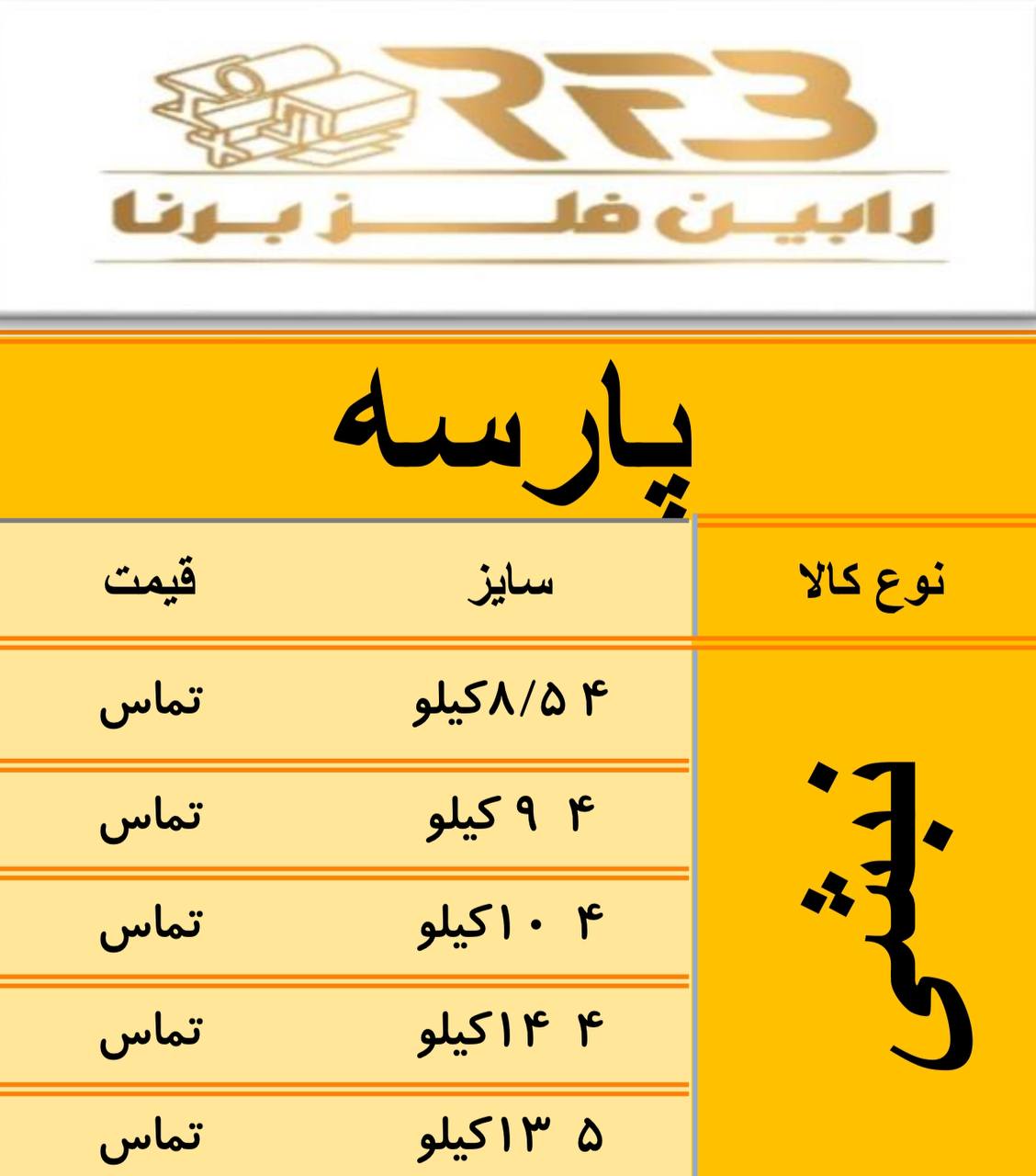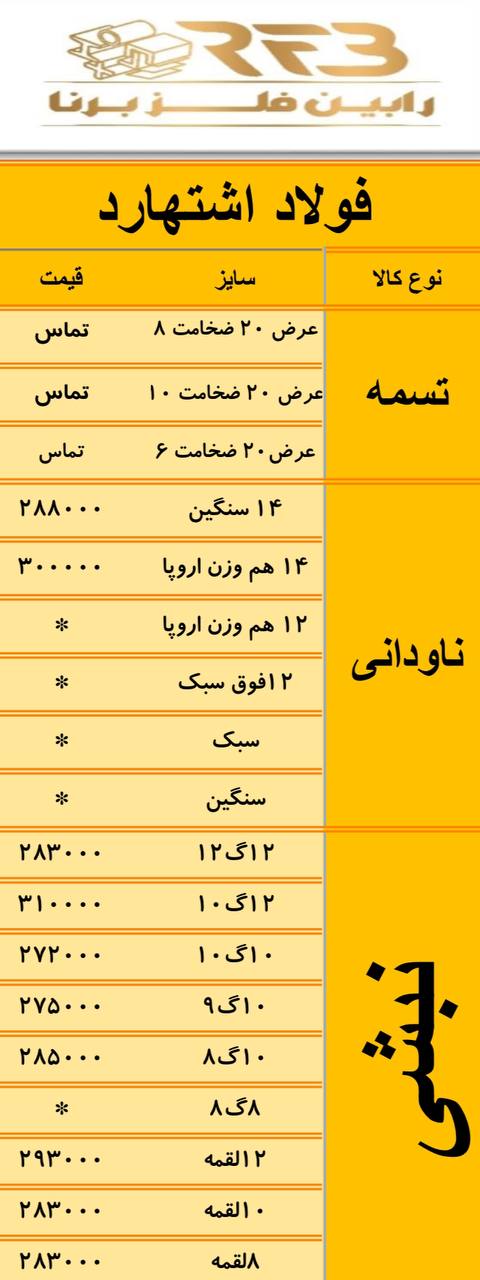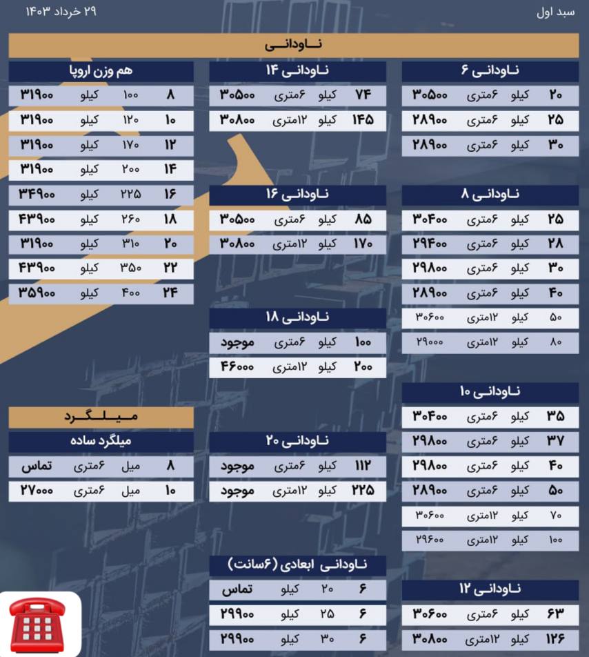 اعلام موجودی ناودانی و میلگرد
