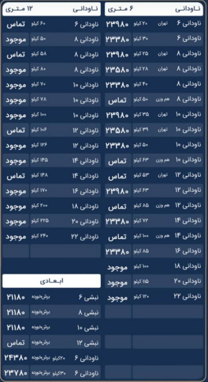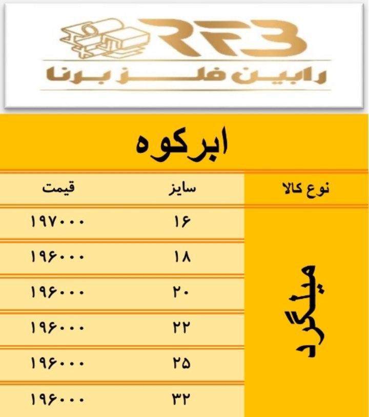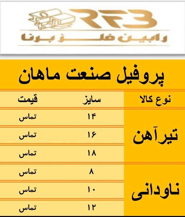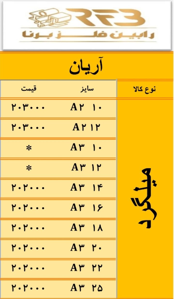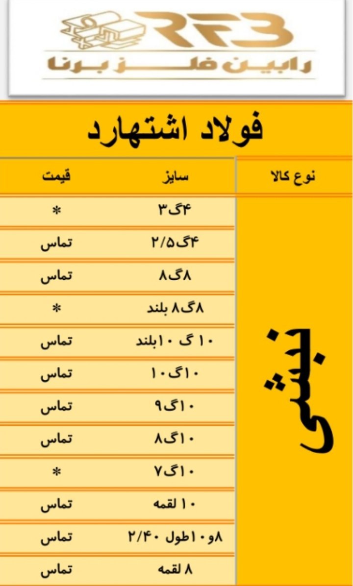 #ضايعاتذوبی 1-روغنی نرمه 14250 2-روغنی ضخیم 14250 3-روغنی ریزبار و پولکی 14250 4-گالوانيزه و ورق روكشدار خودرويي 14000 5-سوپر ويژه 14000 6-كلاف 13950 7-ويژه 1 ...