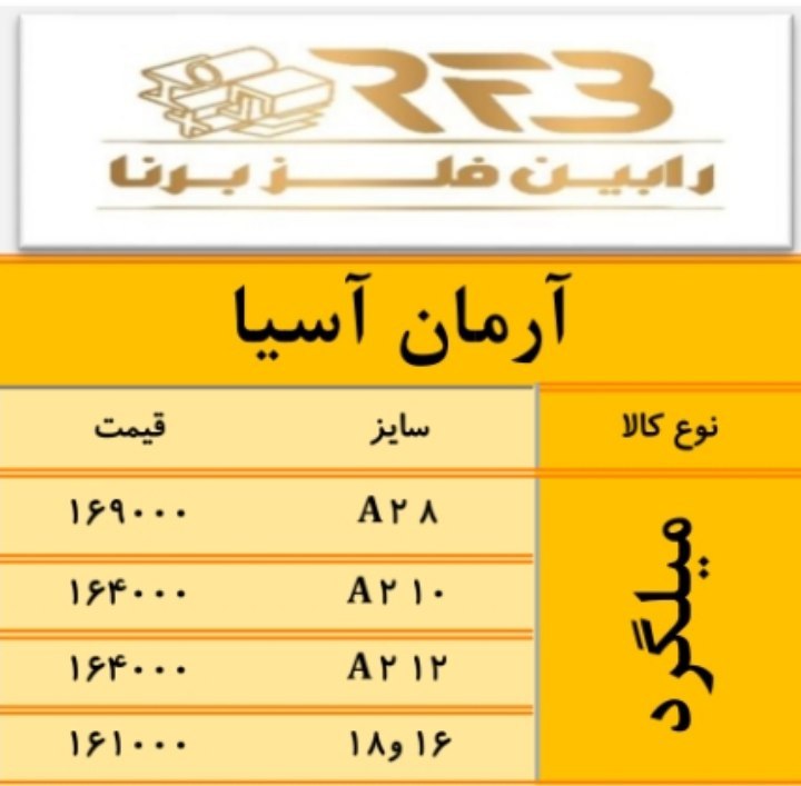 لیست موجودی و قیمت میلگرد آرمان آسیا