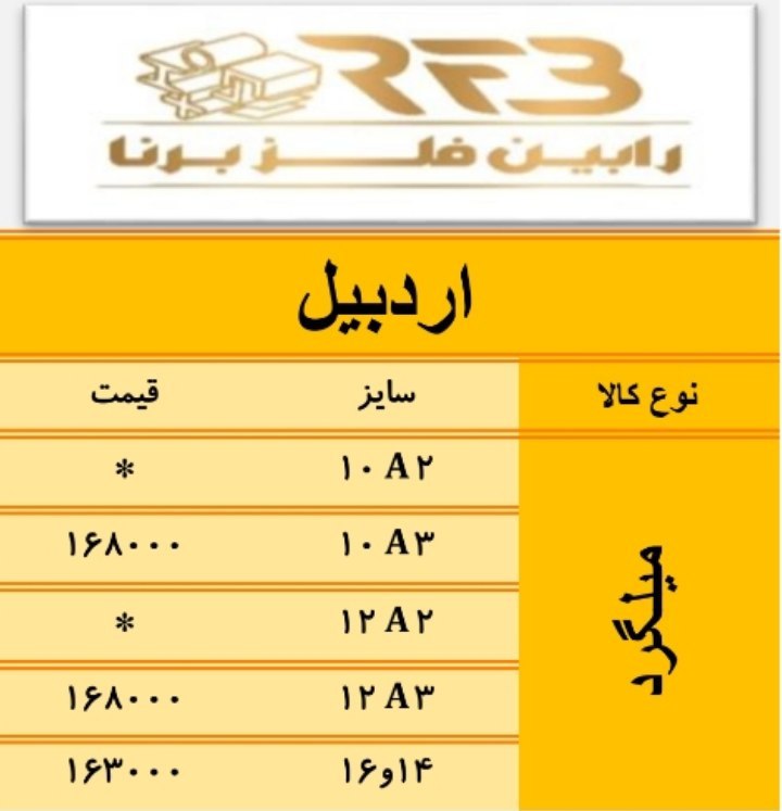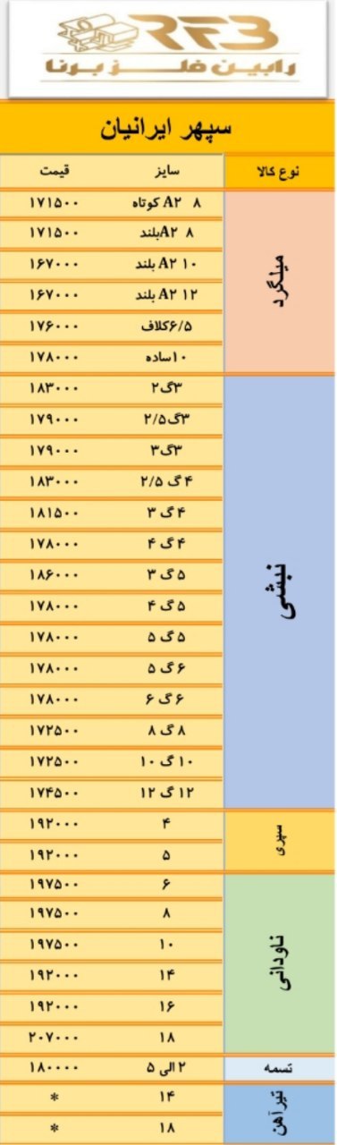 لیست موجودی و قیمت نبشی/ ناودانی و میلگرد سپهر ایرانیان