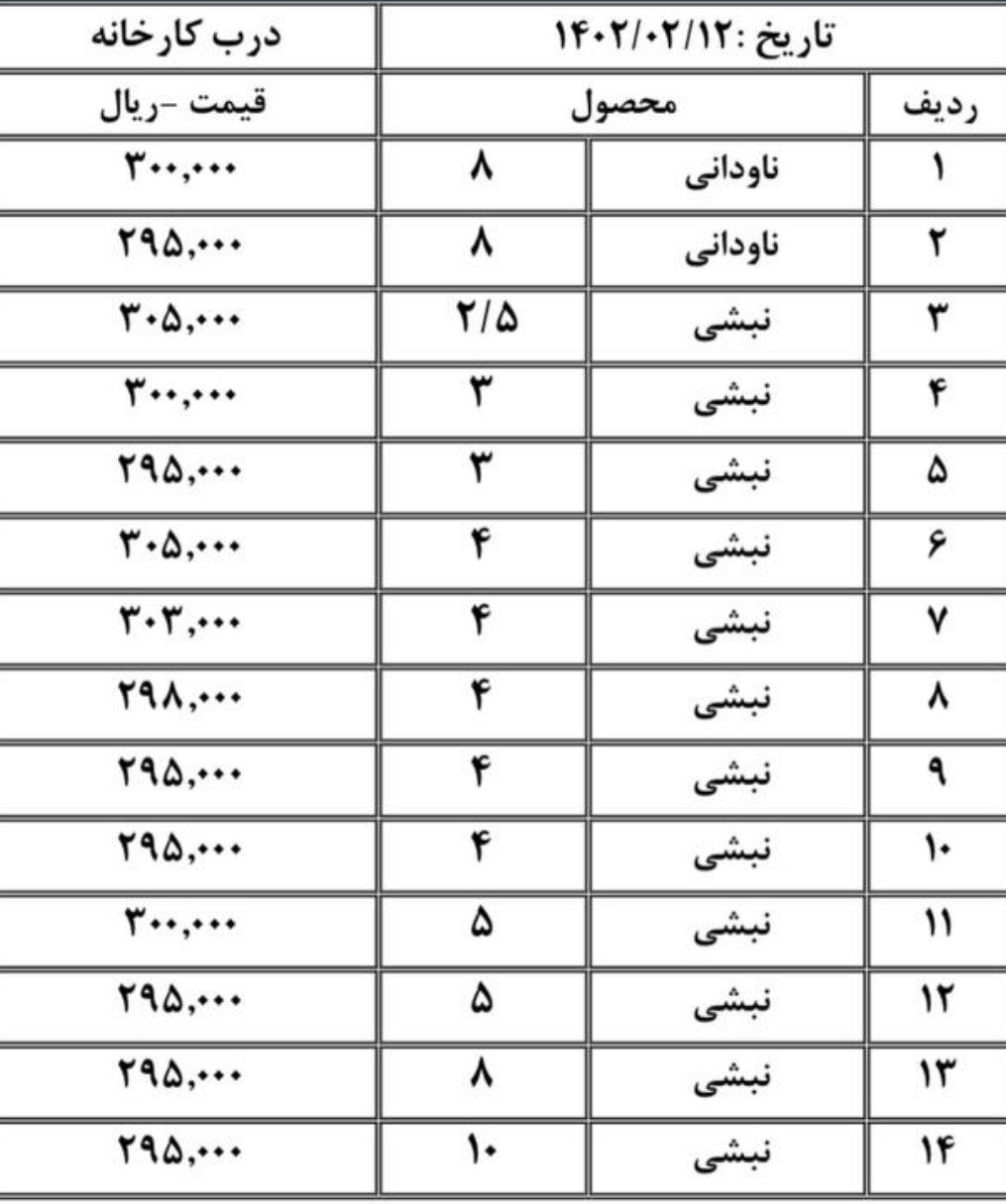 فولاد راد همدان سایز8 👈 306850سایز 10 👈303850 سایز12 👈 299850سایز14 👈 297850 سایز16 👈 297850 سایز18 👈 297850 سایز20 👈 297850 سای ...