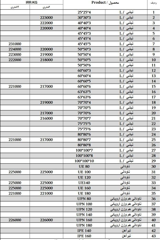 فولاد جاوید بناب 🔹نبشی 40*3 سبک : ۲۳۴۰۰۰ ریال 🔹نبشی 40*3 : ۲۲۸۹۰۰ ریال 🔹نبشی 40*4 سبک : ۲۲۸۷۰۰ ریال 🔹نبشی 40*4 : ...