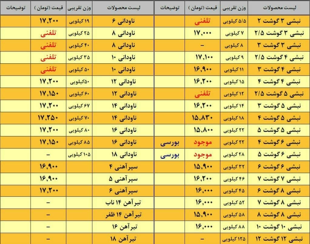 فولاد روهینا دزفول میلگرد 8 میلگرد 10 157000 میلگرد 12 ...