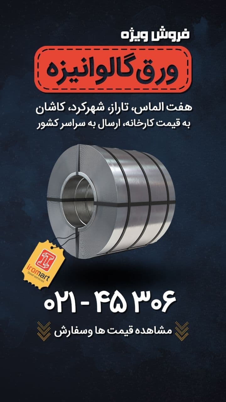 #آیرومارت 🔴🔴فروش ویژه "ورق گالوانیزه"🔴🔴 هفت الماس،تاراز، شهرکرد، کاشان به قیمت کارخانه، ارسال به سراسر کشور 🔸با ما تماس بگیرید 02145306 داخلی 326 آیرومارت؛ ...