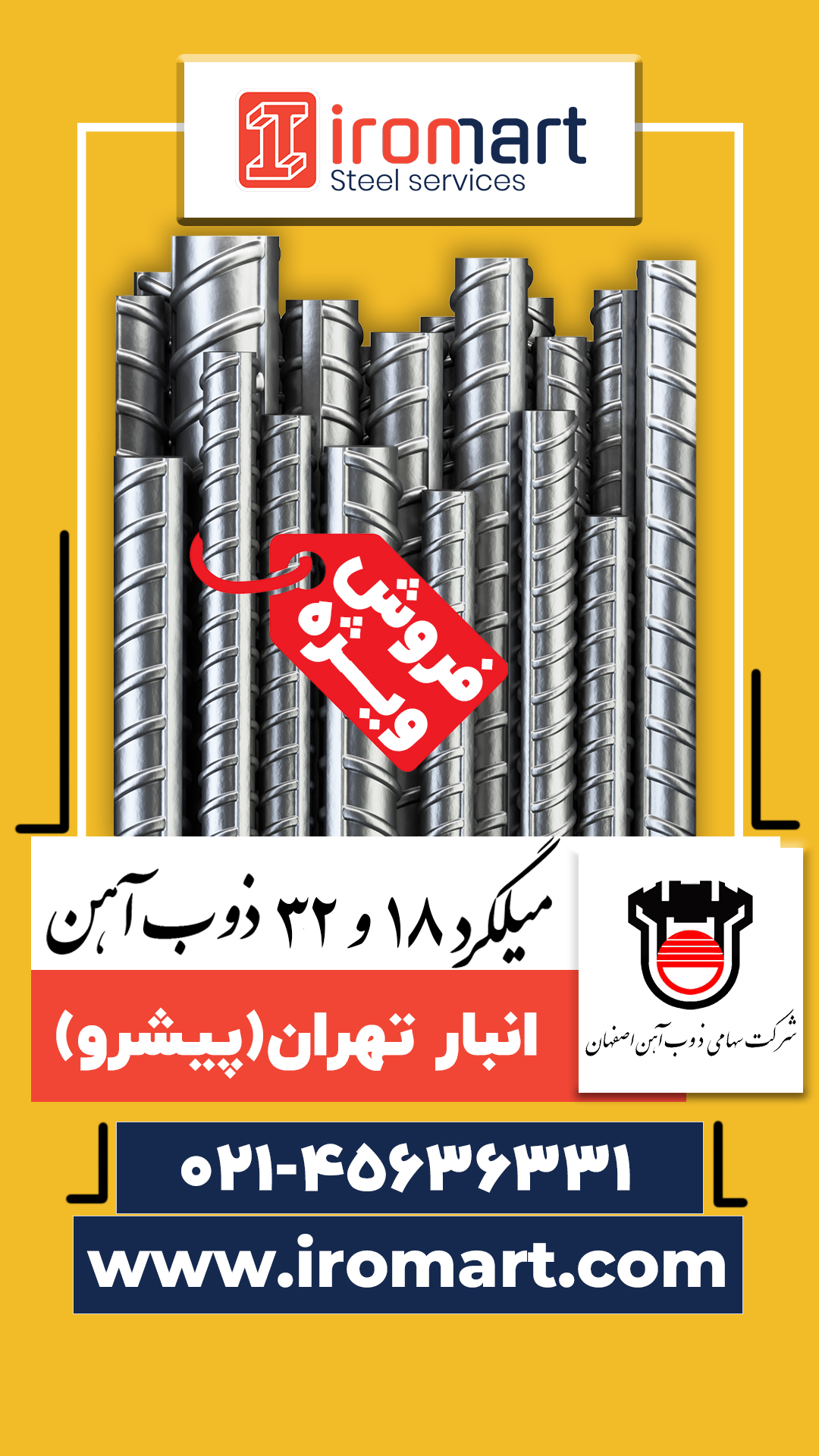 🔴🔴🔴فروش ویژه "میلگرد ذوب آهن"🔴🔴🔴 سایز 18 و 32 بهترین قیمت با ما تماس بگیرید 02145636331 داخلی 326 آیرومارت؛ یک کلیک تا خرید آهن 🌏 https://b2n.ir/814324 🔷 t.me ...