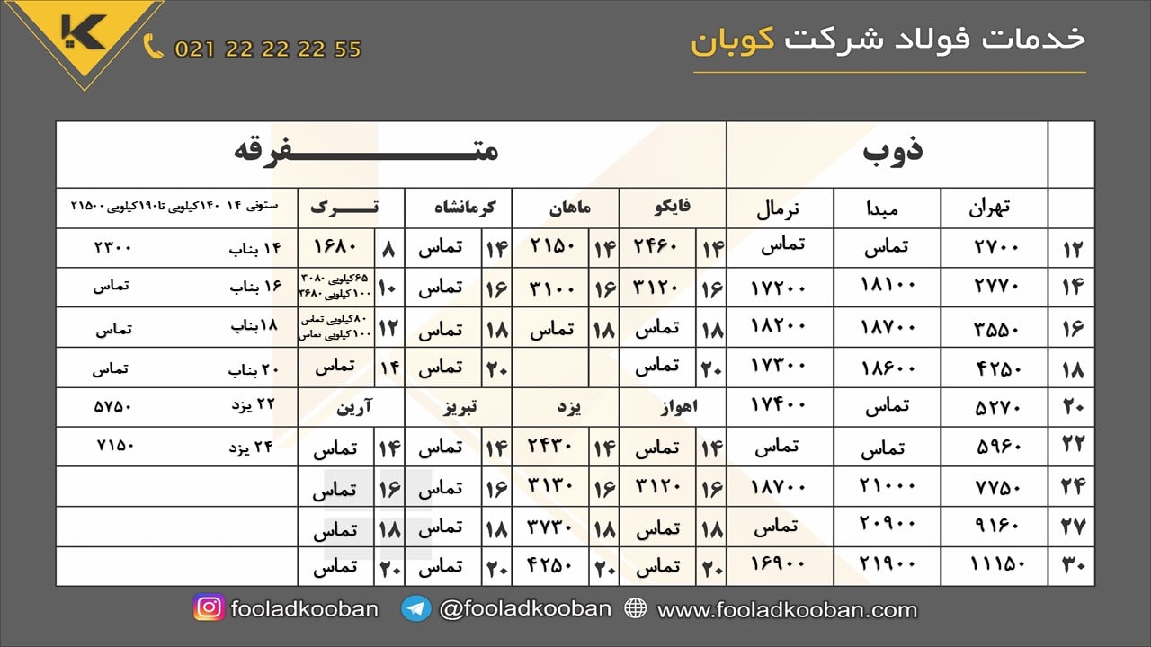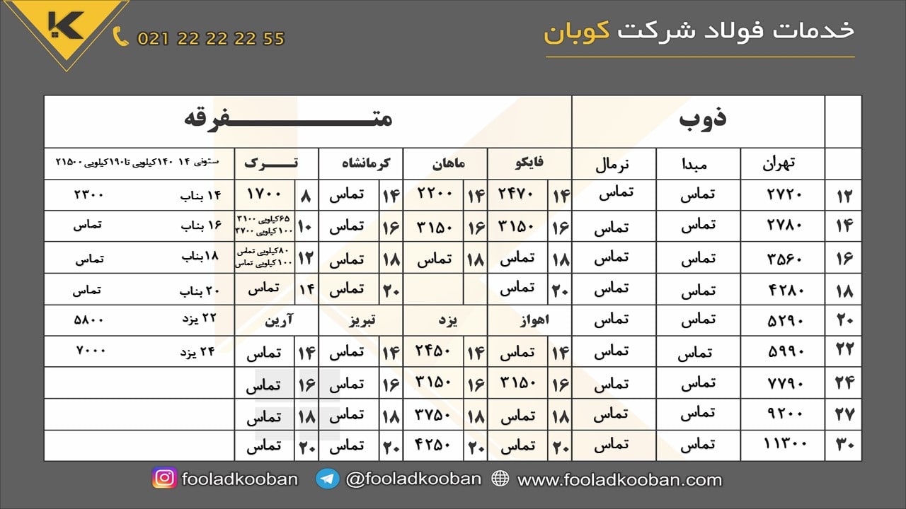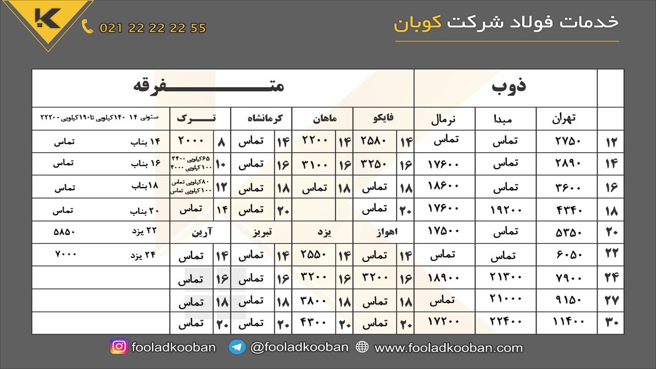 📅 سه شنبه 1401/08/10 📅 🔹تیرآهن🔹 🔴براي تاييد قيمت و موجودي با شماره زير تماس بگيريد: ☎️021-22222255