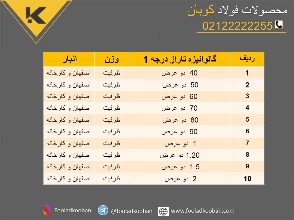 اعلام موجودی ورق گالوانیزه و رنگی