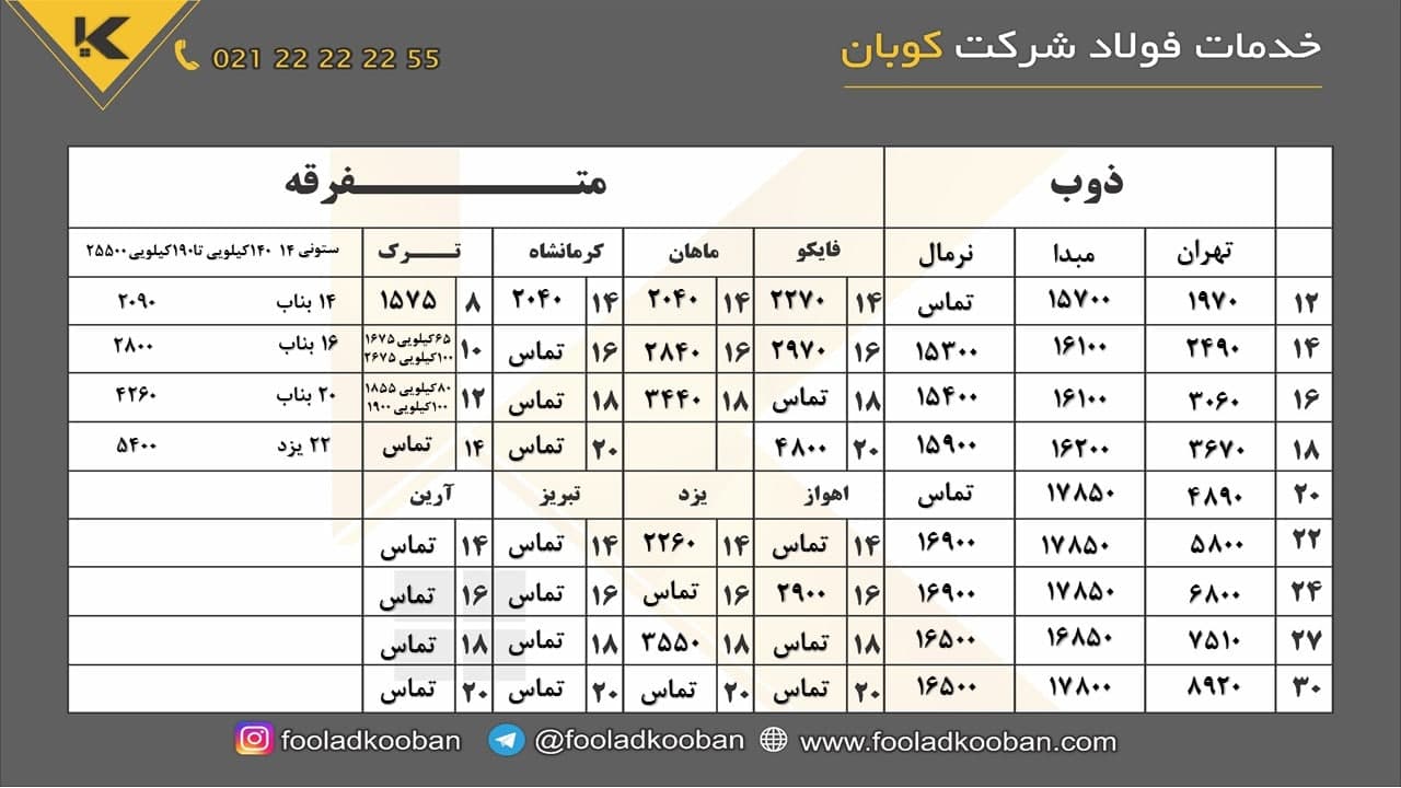 📅 چهارشنبه 1400/06/17📅 🔹تیرآهن🔹 🔴براي تاييد قيمت و موجودي با شماره زير تماس بگيريد: ☎️021-22222255 https://t.me/fooladkooban