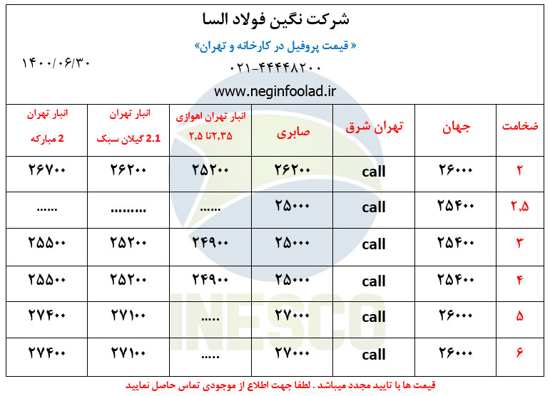 قیمتهای نگین فولاد السا