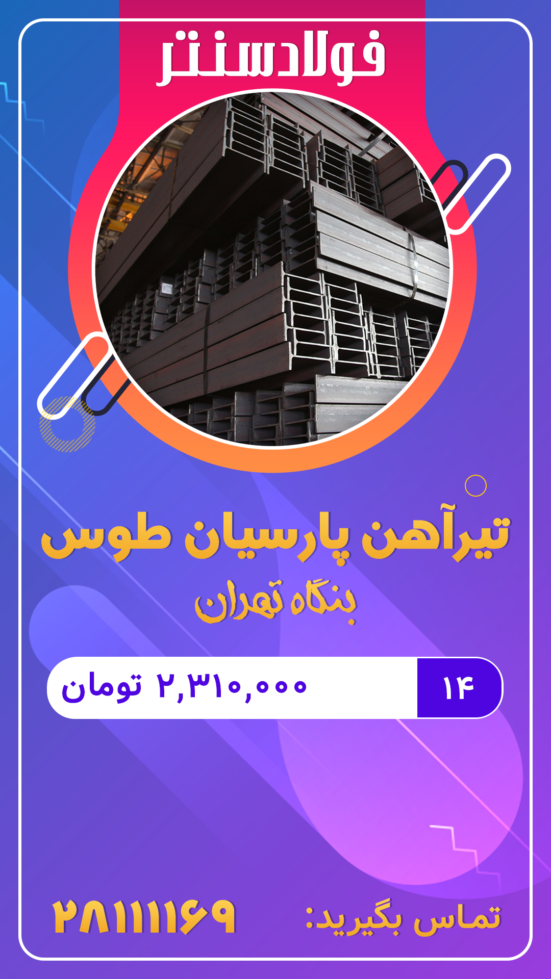 تیرآهن پارسیان طوس( فاکتور رسمی) انبار تهران تیرآهن 14 پارسیان 140کیلو 23,300,000﷼ 🌟قیمت ها همه با تایید تلفنی می باشد👌🏼 🌟تمامی قیمتها هنگام خرید تخ ...
