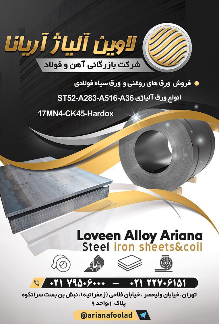 💢بازرگانی #لاوین_آلیاژ_آریانا ✅تامین کننده انواع ورق های: 🔶ورق آلیاژی 🔷ورق روغنی 🔶ورق سیاه #جهت_مشاهده_پروفایل_لاوین_آلیاژ_آریانا👇🏻 🆔https://foolad24.com/pr ...