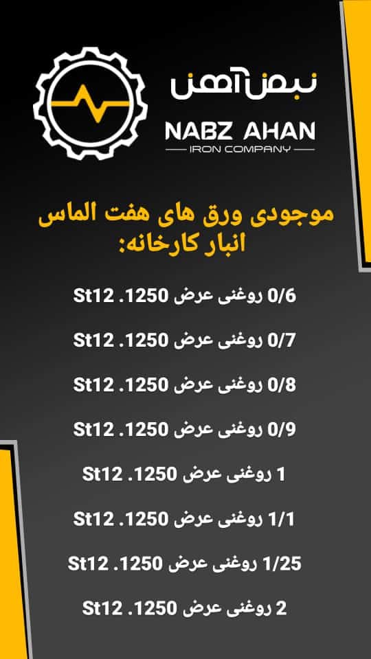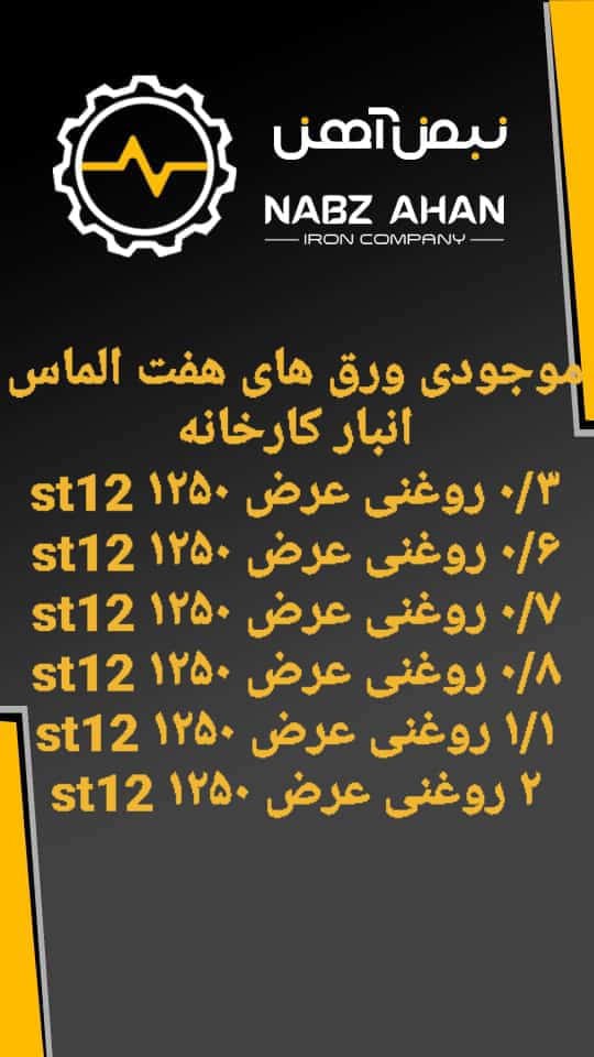 #نبض_آهنتهیه و توزیع انواع آهن آلات صنعتی و ساختمانی 💢موجودی امروز 💢♨️ورق های هفت الماس st12 📍مبدا از انبار کارخانه 0/3 روغنی عرض 1250 0/6 روغنی عرض 1250 0 ...