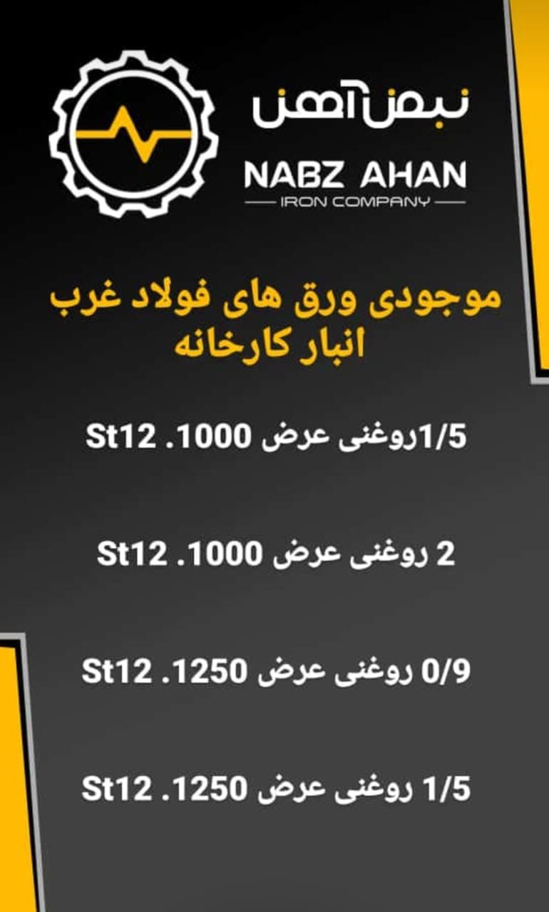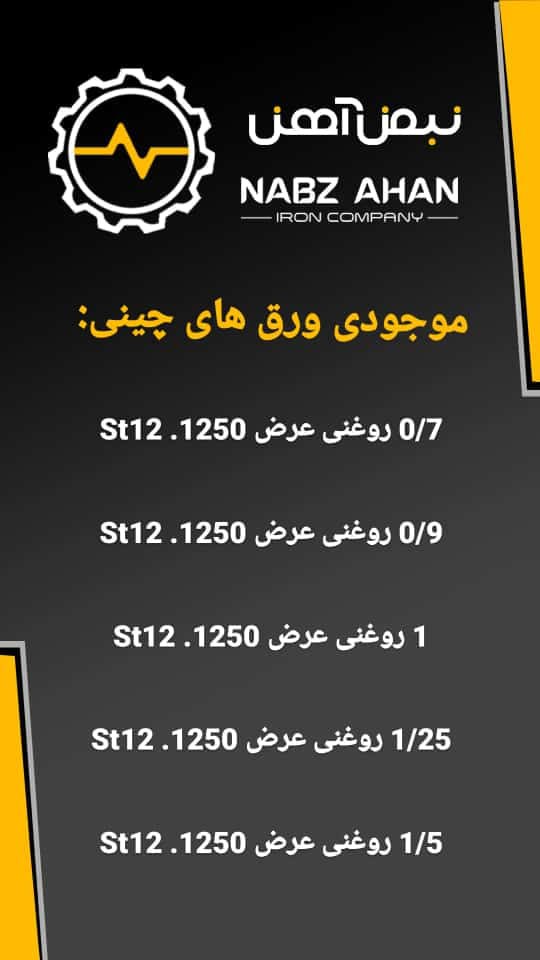 #نبض_آهن💢موجودی ورق های چینی:💢 0.7 روغنی عرض 1250.st12 0.9 روغنی عرض 1250.st12 1 روغنی عرض 1250.st12 1.25 روغنی عرض 1250.st12 1.5 روغنی عرض 1250.st12💢موجودی ورق ...