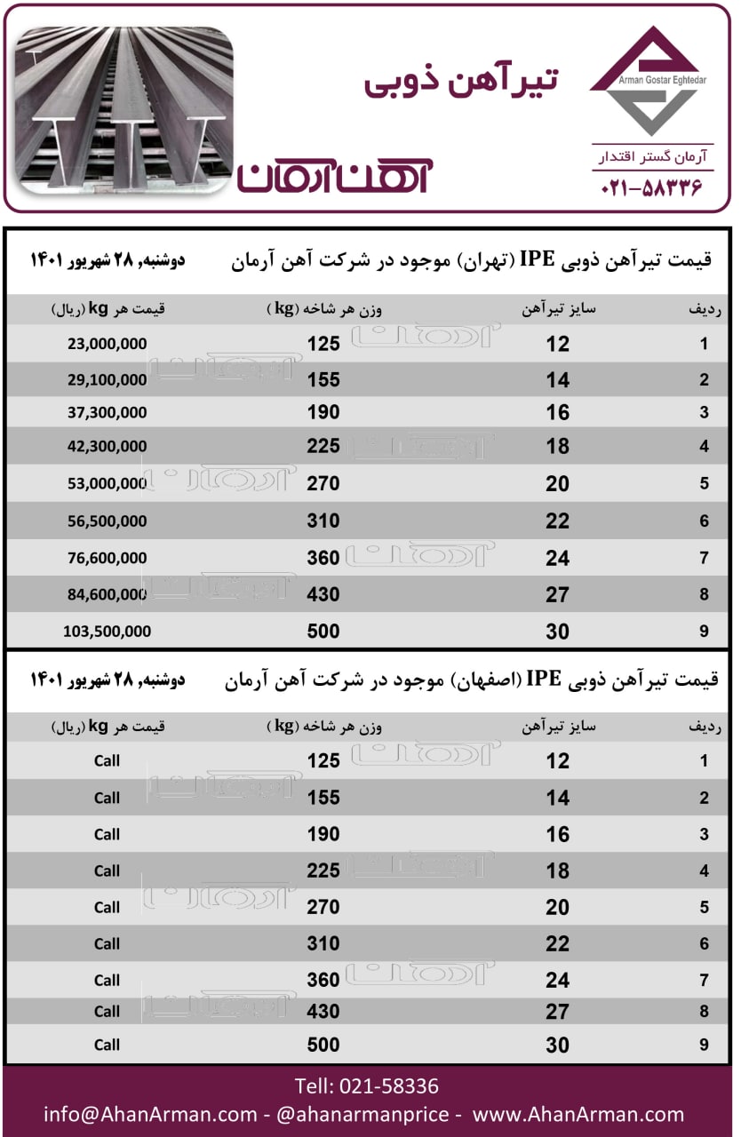 📢قیمت روز تیرآهن ذوبی IPE اصفهان📢 شاخه 12 متری (سایز12 تا 30) 📢قیمت روز تیرآهن ذوبی IPE انبار تهران📢 شاخه 12 متری (سایز 12 تا 30) ☎️۰۲۱-۵۸۳۳۶ داخلی ۱۱۳ خانم طی ...
