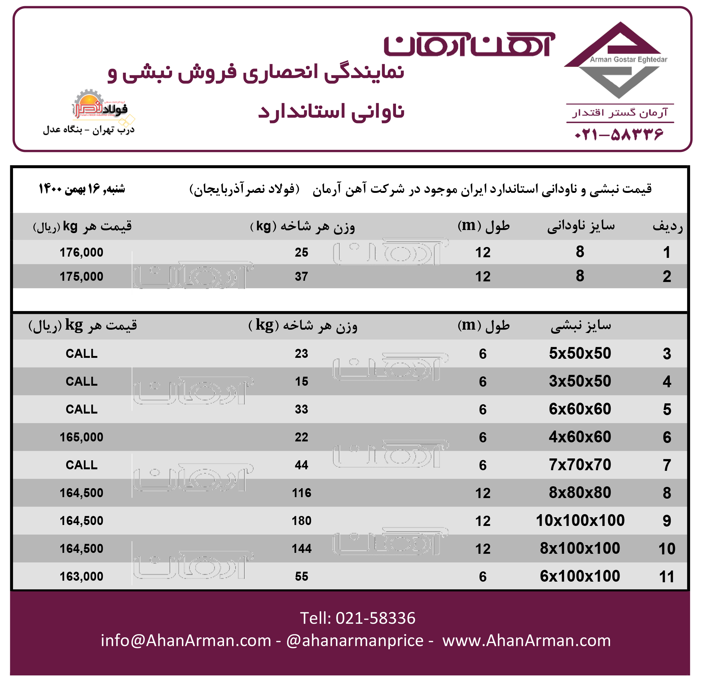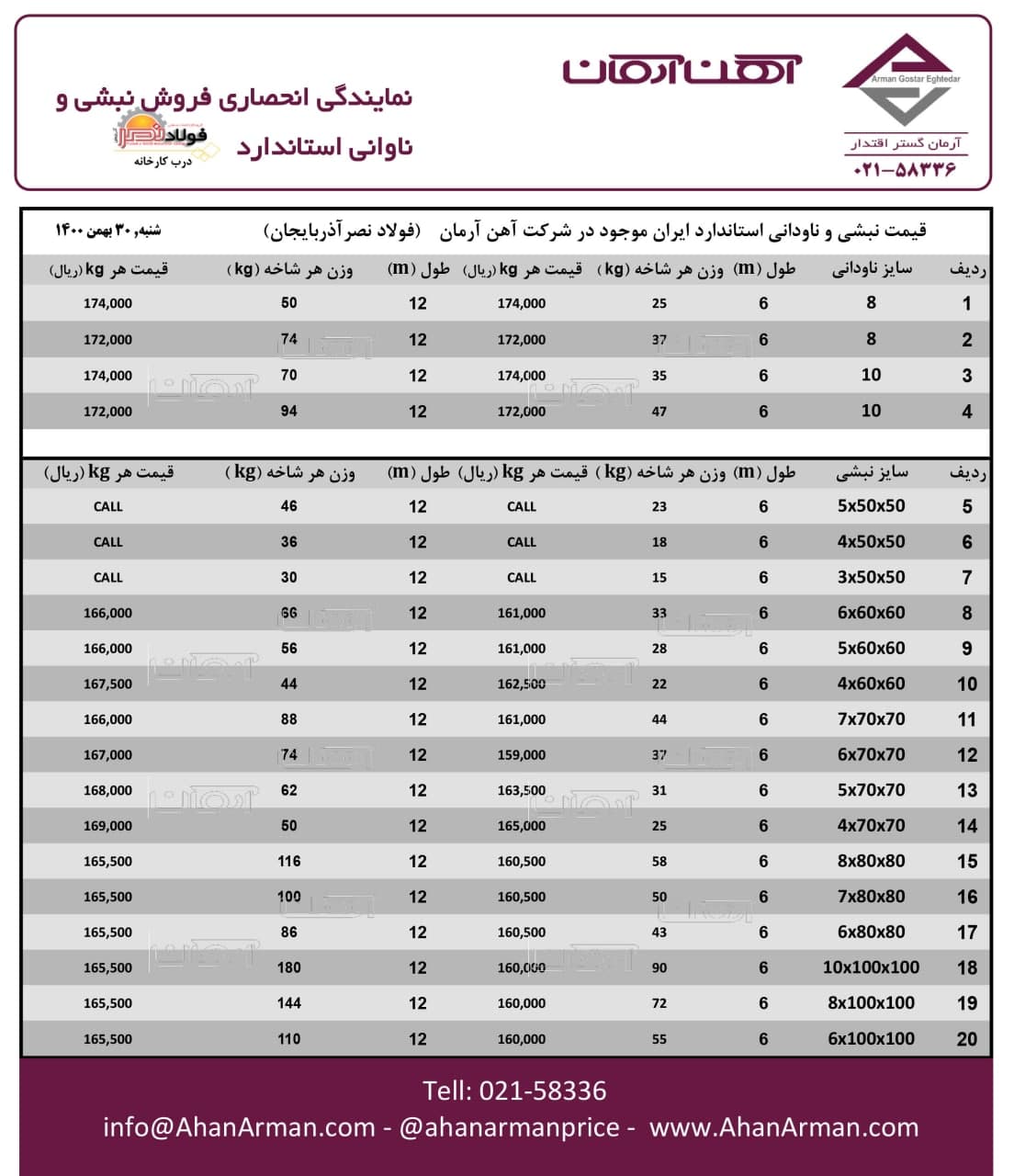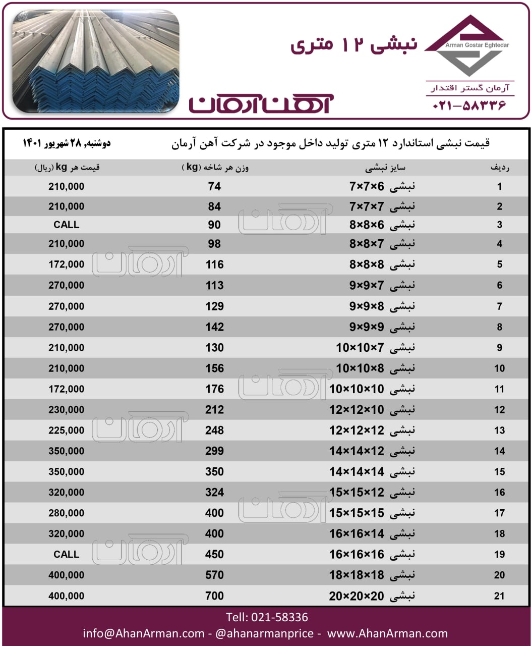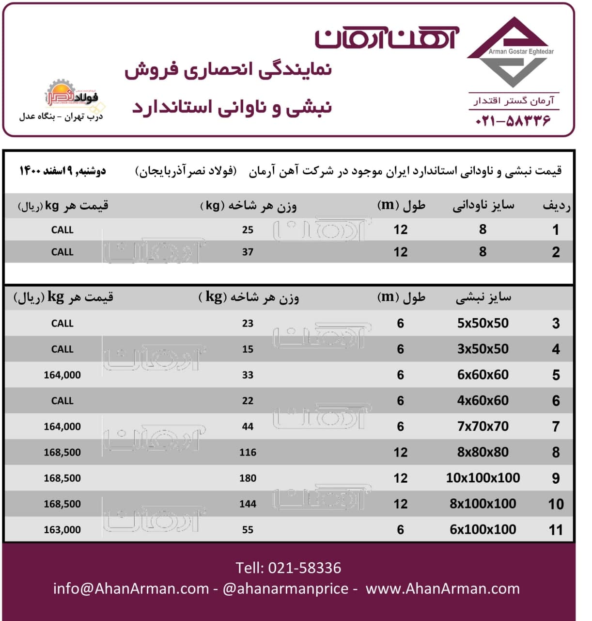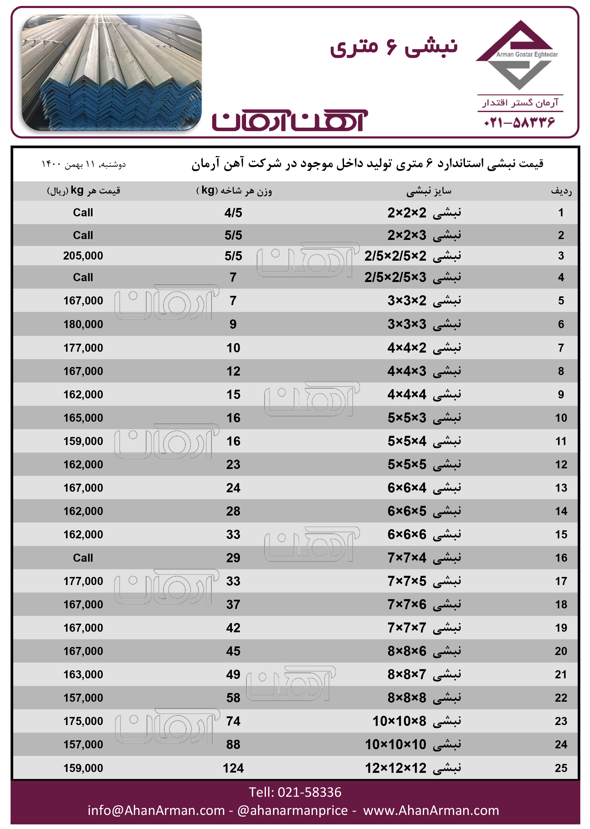 نبشی 6 متری ☎️021-58336 🌐www.ahanarman.com 🆔 @ahanarmanprice https://t.me/AhanArmanPrice
