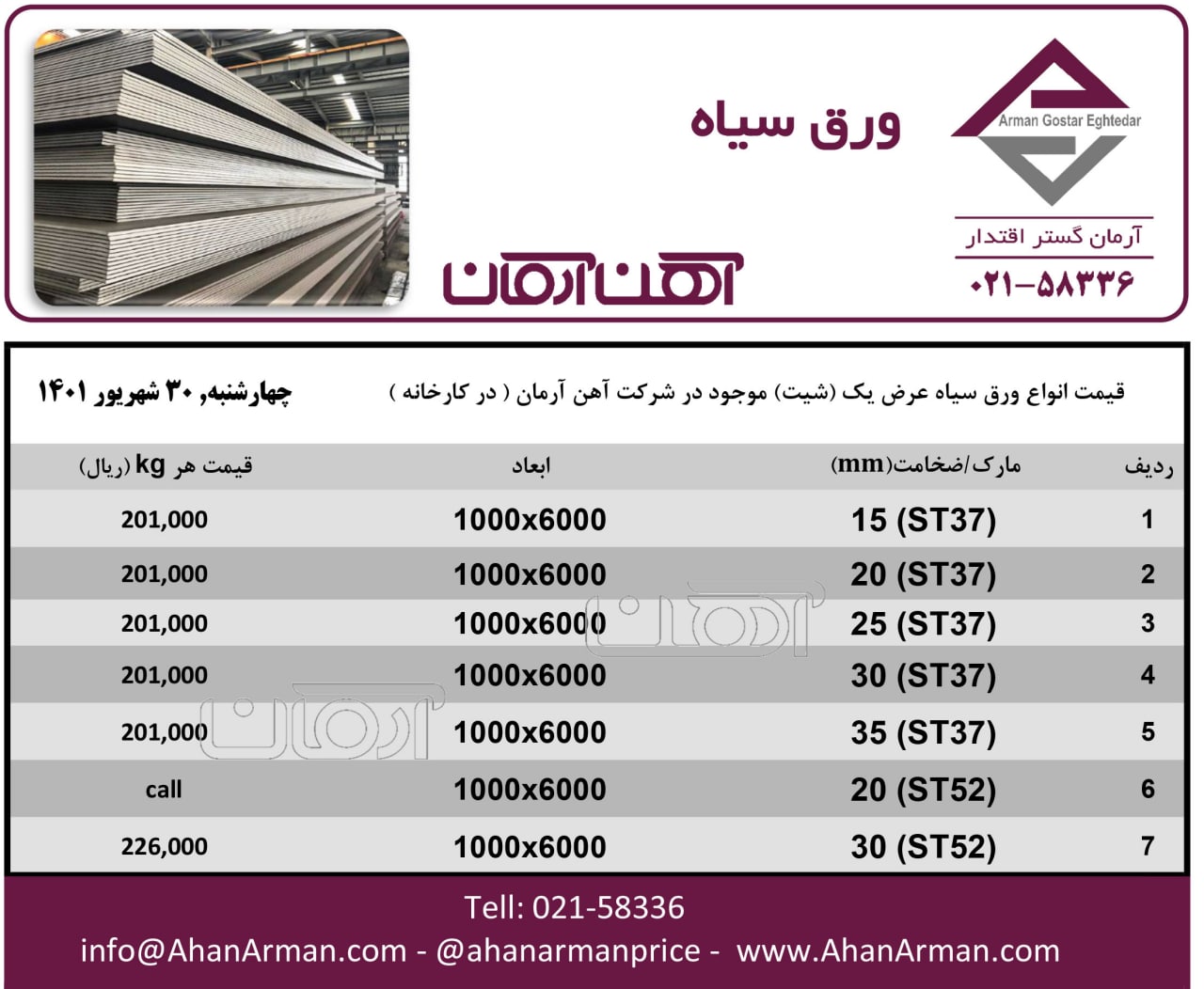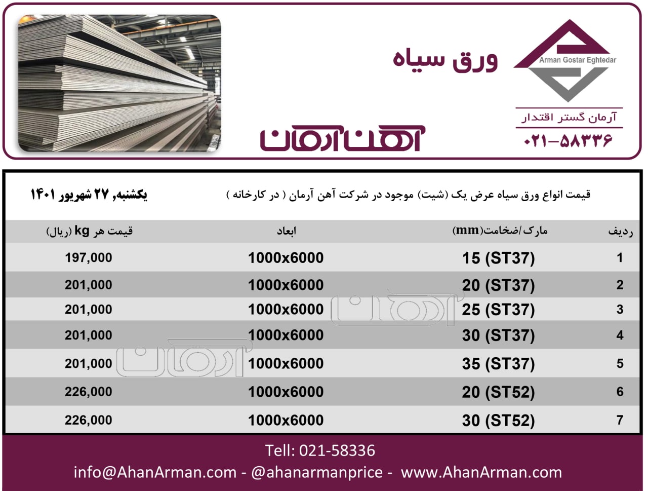 ورق سیاه کاویان ☎️۰۲۱-۵۸۳۳۶ داخلی 113 خانم طیبی 🌐www.ahanarman.com 🆔 @ahanarmanprice https://t.me/AhanArmanPrice