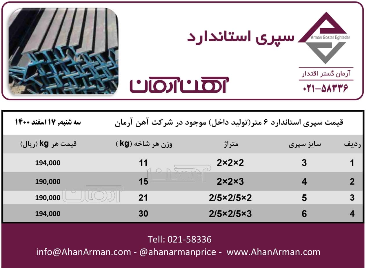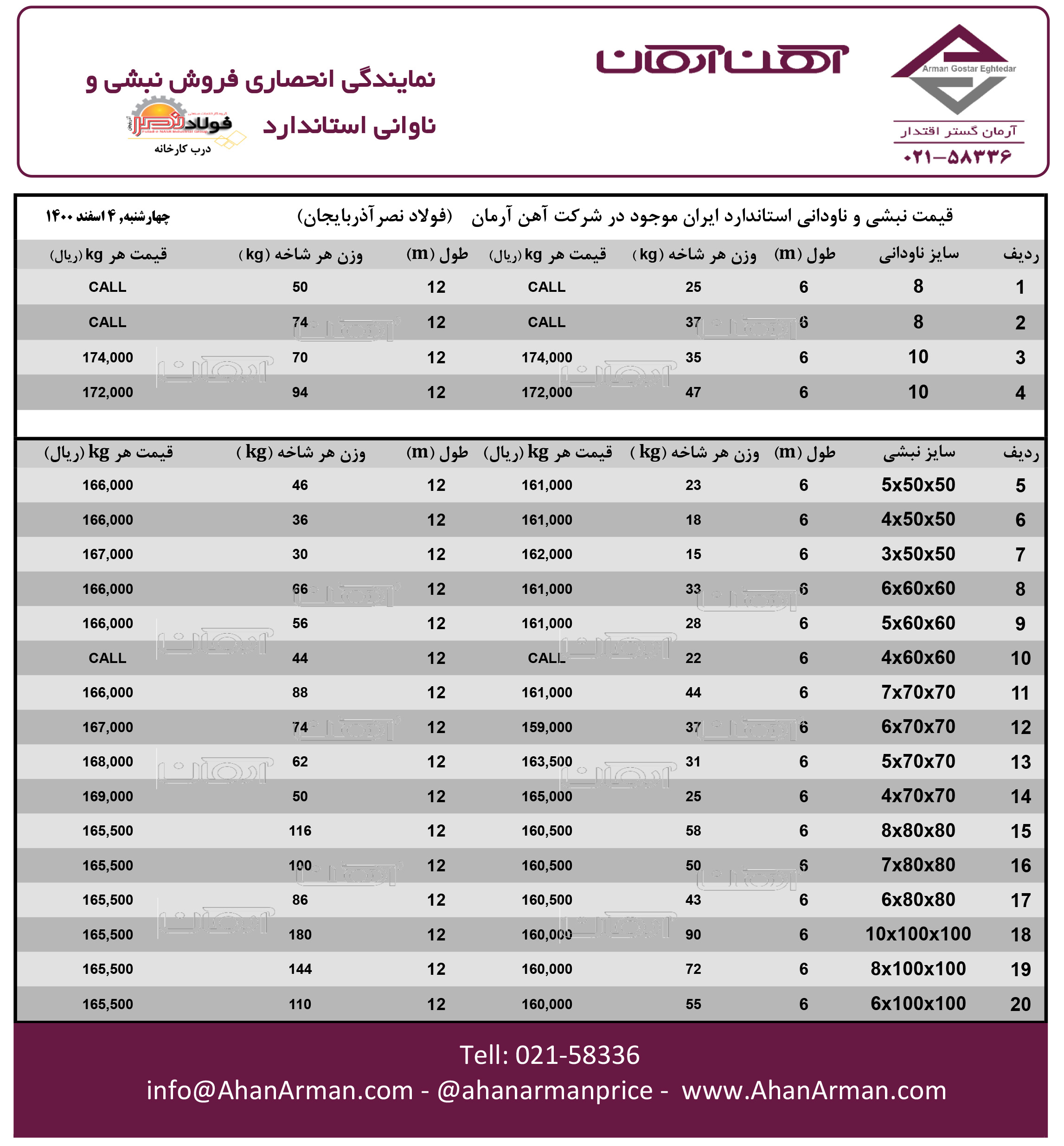 داخلی ۱۱۳ ☎️۰۲۱-۵۸۳۳۶ 🌐www.ahanarman.com 🆔 @ahanarmanprice https://t.me/AhanArmanPrice