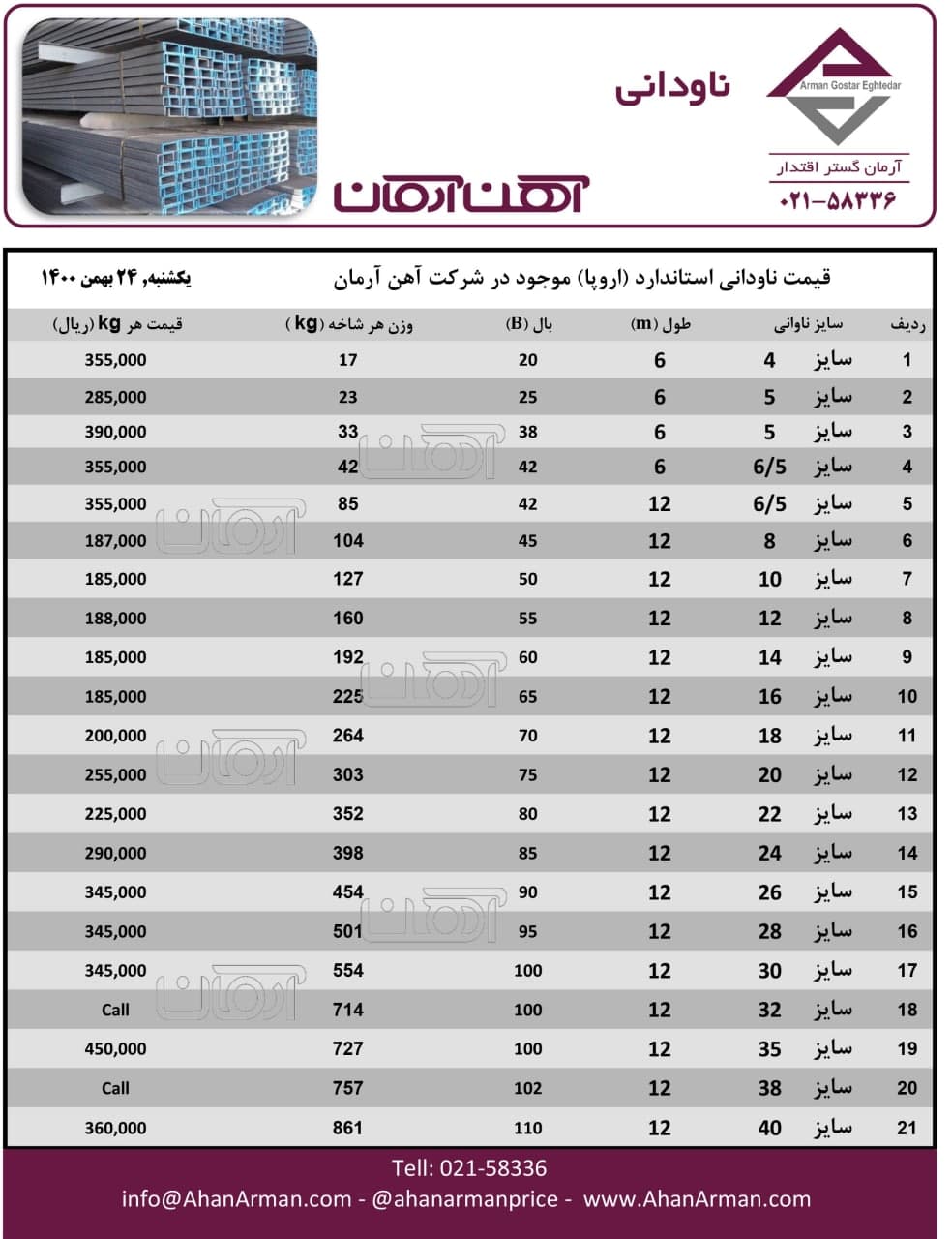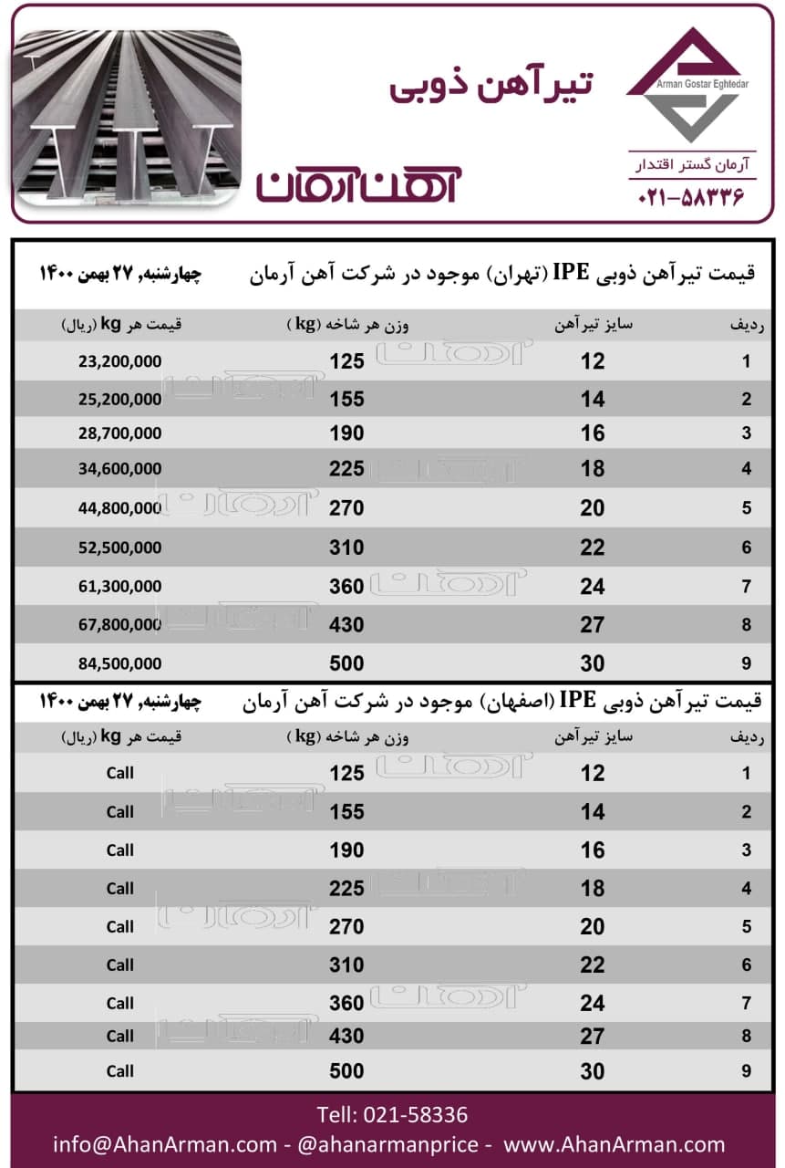 تیرآهن ذوبی ☎️021-58336 🌐www.ahanarman.com 🆔 @ahanarmanprice https://t.me/AhanArmanPrice