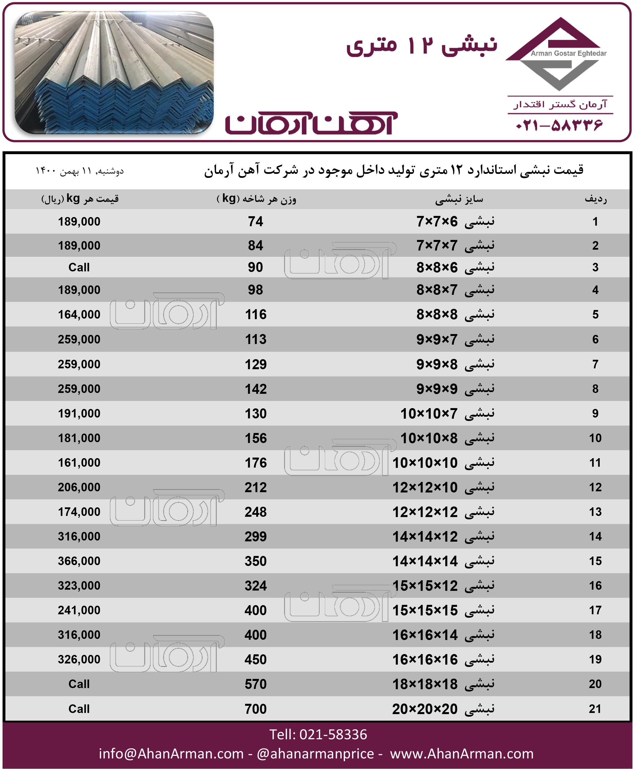 نبشی 12 متری ☎️021-58336 🌐www.ahanarman.com 🆔 @ahanarmanprice https://t.me/AhanArmanPrice