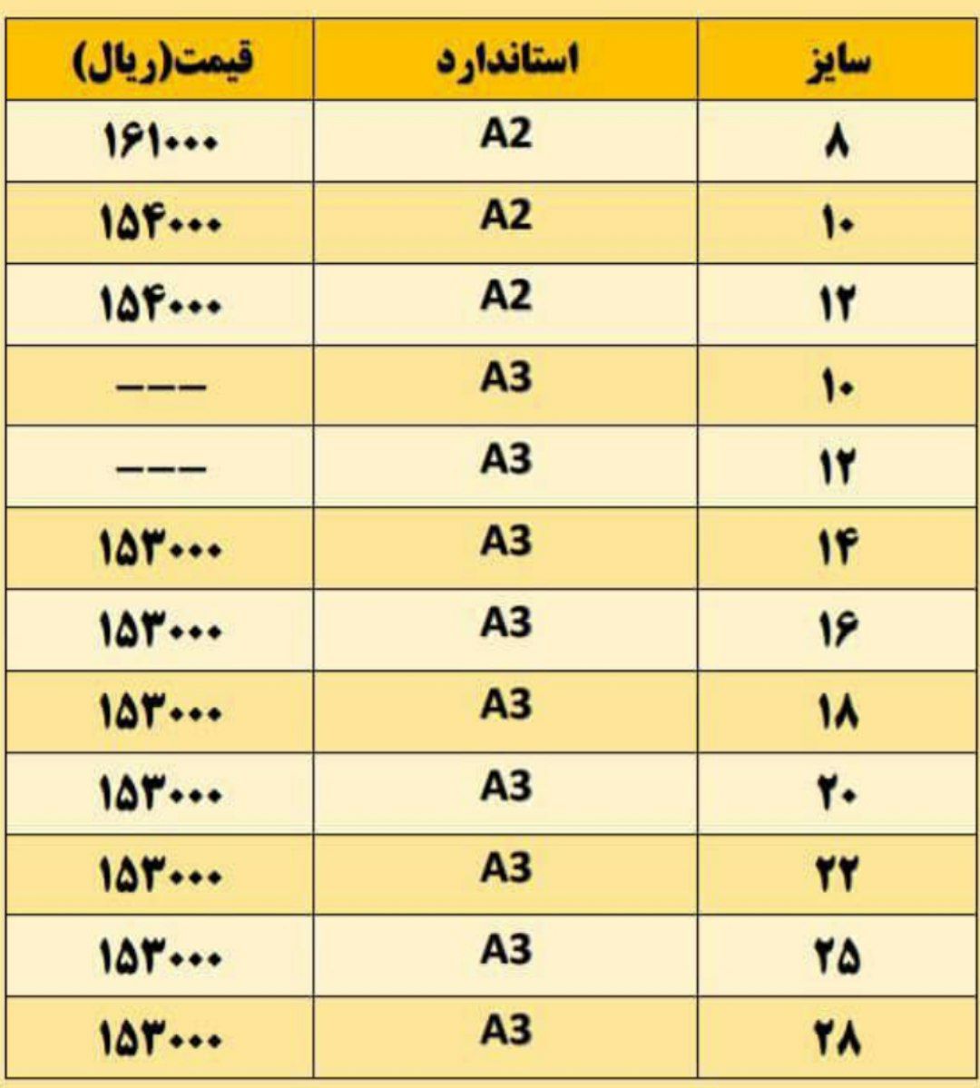 میلگرد سایز ۸ : ۱۶۴۵۰ تومان میلگرد سایز ۱۰،۱۲ : ۱۶۲۵۰ تومان میلگرد سایز ۱۴ تا ۳۲ : ۱۵۹۵۰ تومان تیرآهن سایز ۱۴ : ۱۶۰۰۰تومان