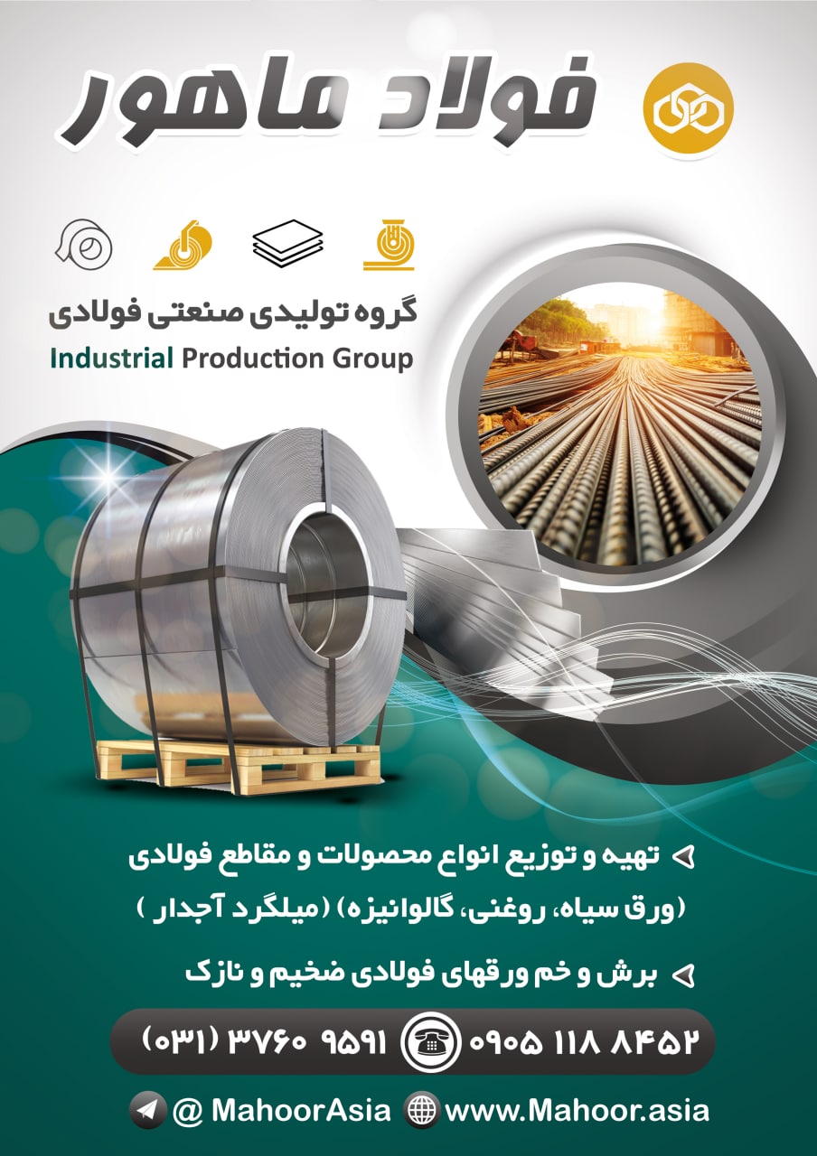 #فولاد_ماهور 🔵 ورق سیاه فولاد غرب درجه یک: ⚫️ ۲.۵ ⚫️ ۲.۸ 🔵 ورق گالوانیزه کاشان: ⚫️ ۰.۶ * ۱۲۵۰ ⚫️ ۱ * ۱۲۵۰ ⚫️ ۱.۲۵ * ۱۲۵۰ 🔵ورق گالوانیزه دشتستان: ⚫️ ۰.۵ ...
