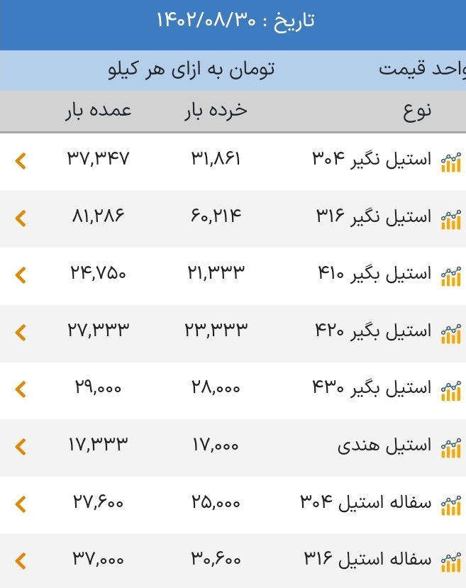 اعلام موجودی ضایعات استیل و دیگر فلزات