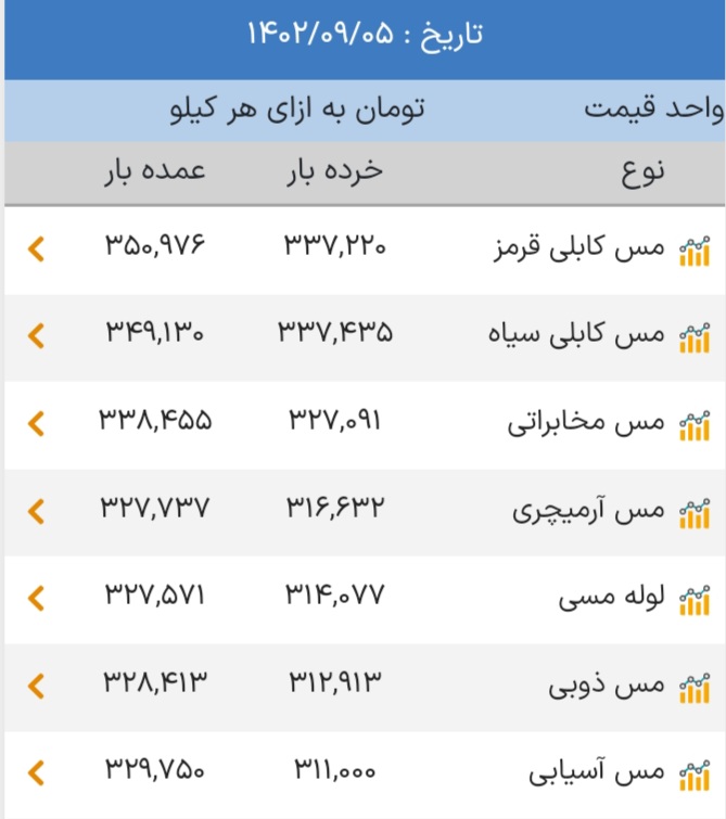 اعلام موجودی ضایعات مس و برنج