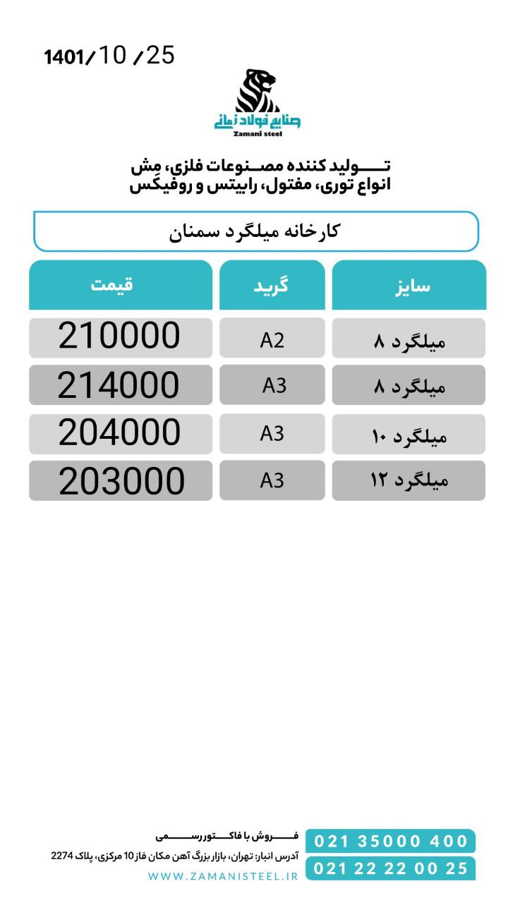 قیمتهای فولاد زمانی (صنایع فولاد زمانی )