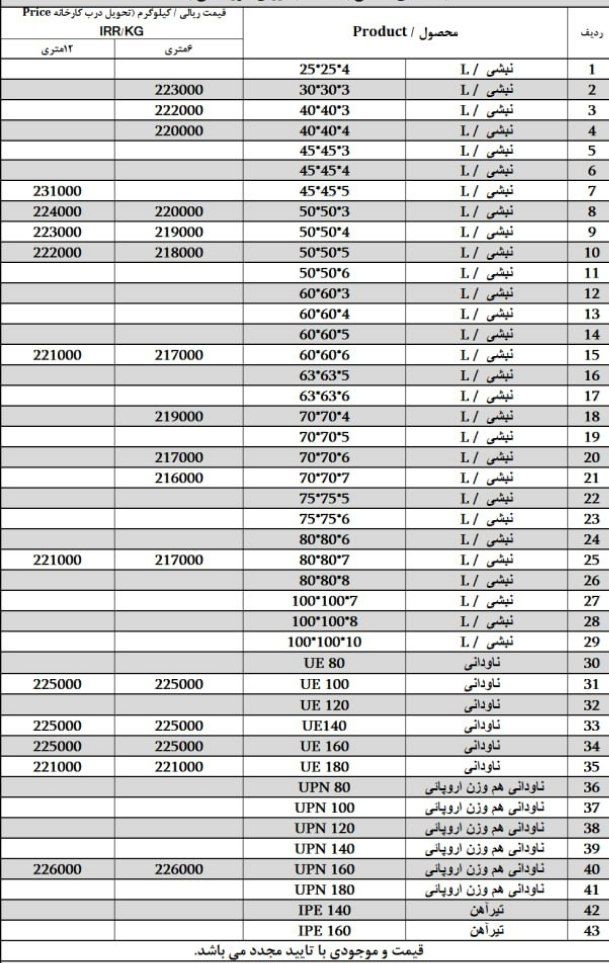 #فولاد_یزد_احرامیان🔸 تیراهن 14 نیم سبک یزد: 🔸 تیرآهن 16 نیم سبک یزد: ۲۲۵۵۰۰﷼ 🔸 تیرآهن 18 نیم سبک یزد: ۲۳۷۵۰۰﷼ 🔸 تیرآهن 20 نیم سبک یزد: 🔸 تیرآهن 24 نیم سبک یزد ...