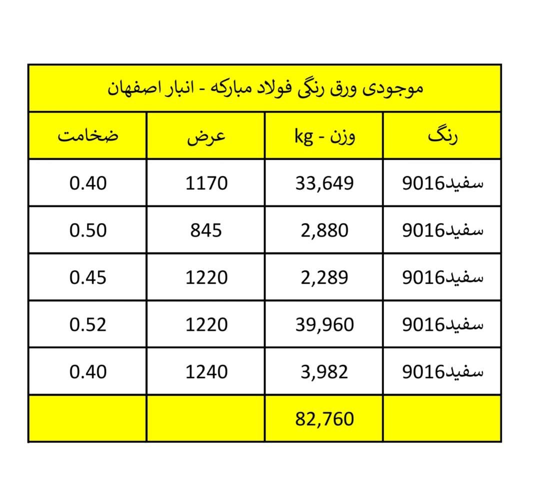 فروش ورق رنگي فولاد به صورت سبدي و جزئي 🔹دفتر فروش: ☎️ 031-910-910-65 📱 09132356510 (سجاد شهریاری) 📱 09133758740 (خانم صادقي)