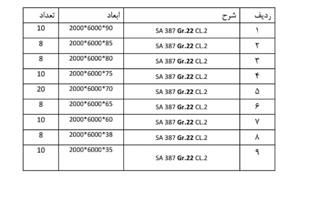 لیست ورق گرم زیر را خریداریم 12*1.5*8 .........7 برگ 12*2*8 .............3برگ 12*2*12 ........1 برگ 12*1.5*12 ........4 برگ 6*1.5*14 ........1برگ