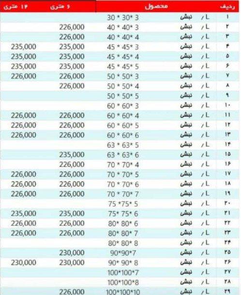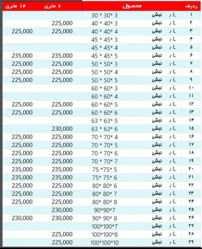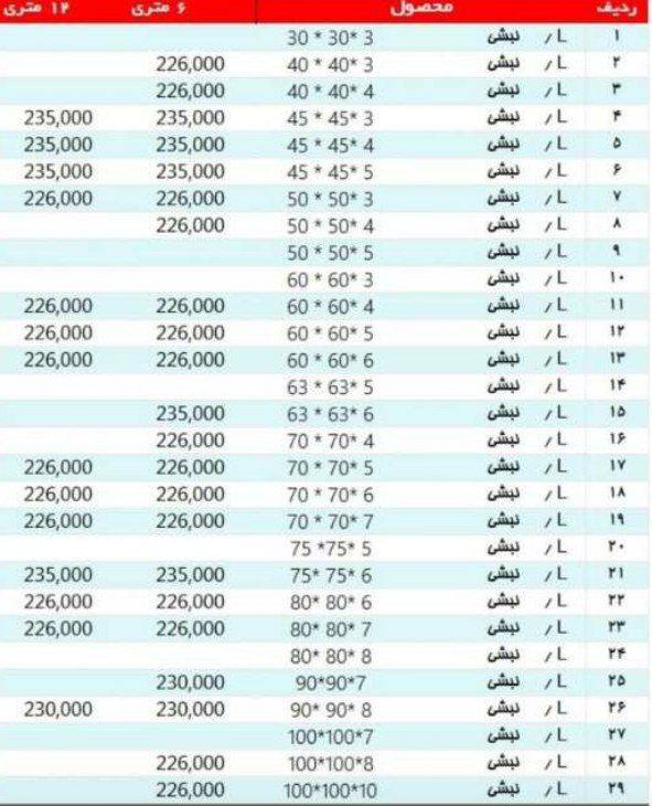 #آریان_فولاد نبشی 3*۴ »»235500««« نبشی ۴*۴ »»»230000««« نبشی ۴*۵ »»»230000««« نبشی ۵*۵ »»»230000««« نبشی ۶*۶ »»» 230000««« نبشی ۷*۷ »»»230000««« نبشی ۸*۸»»»230 ...